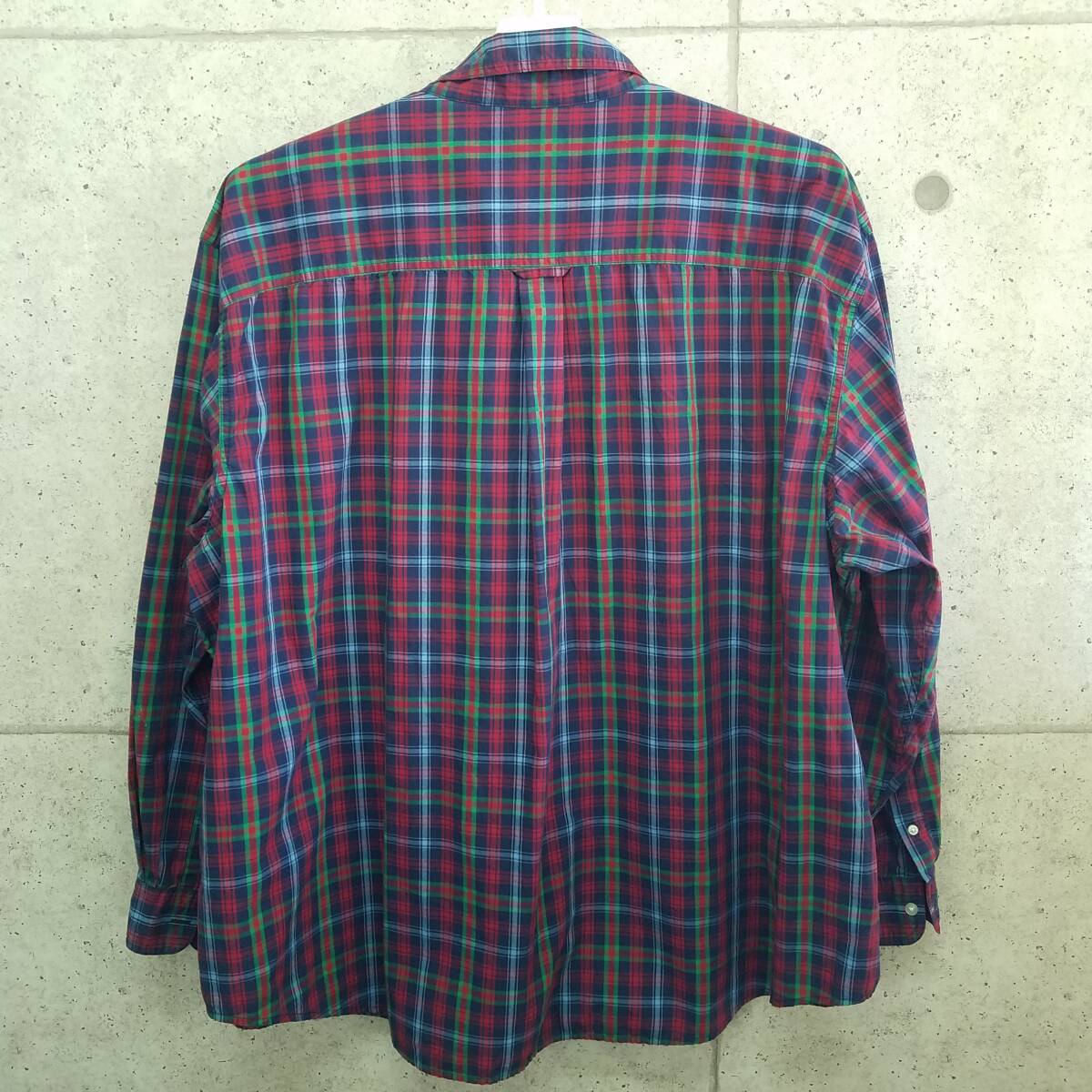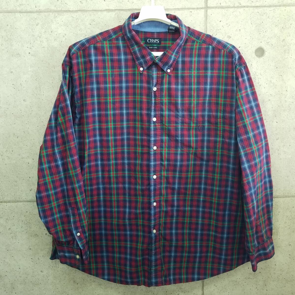 中古 アメリカ古着 CHAPS チャップス 長袖シャツ メンズ 4XL 5L 赤 レッド 紺 ネイビー チェック柄 ビンテージ カジュアル 送料無料