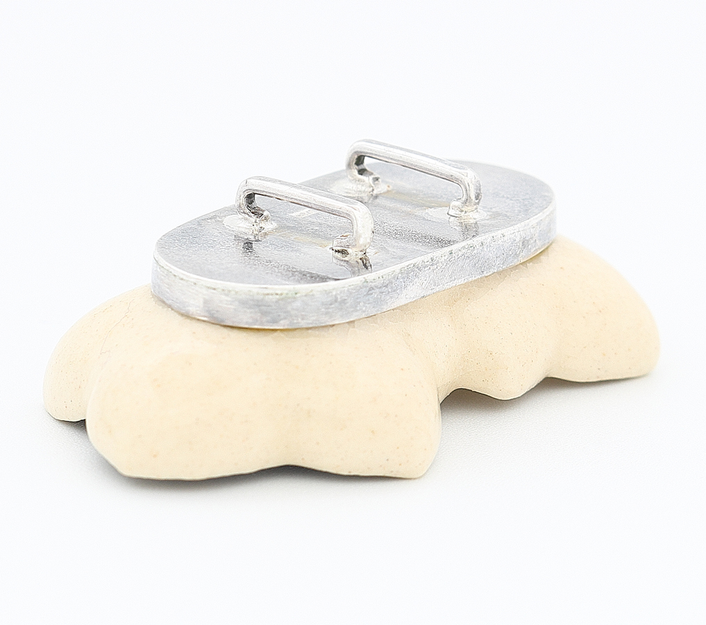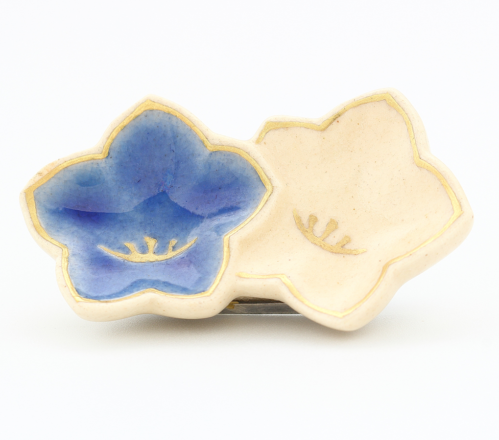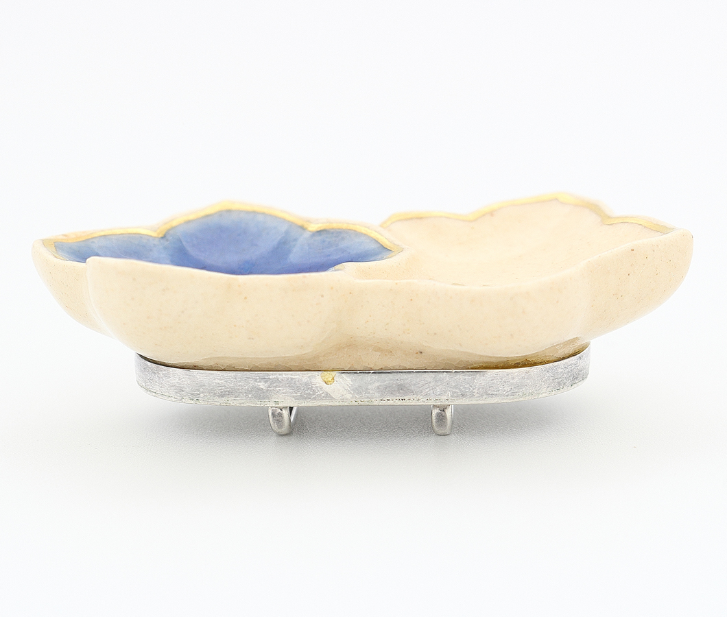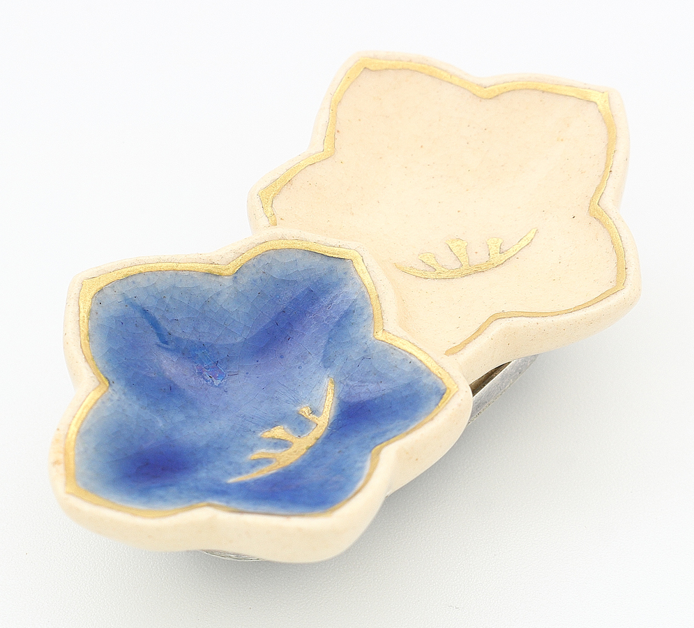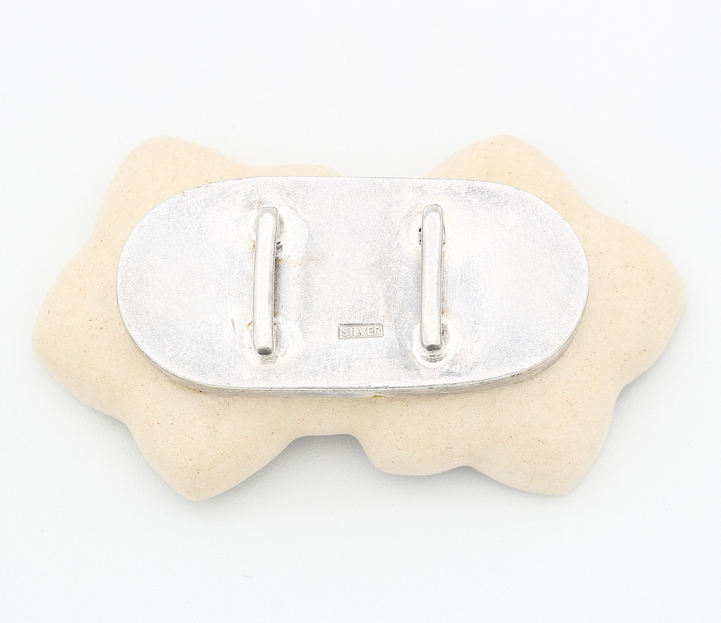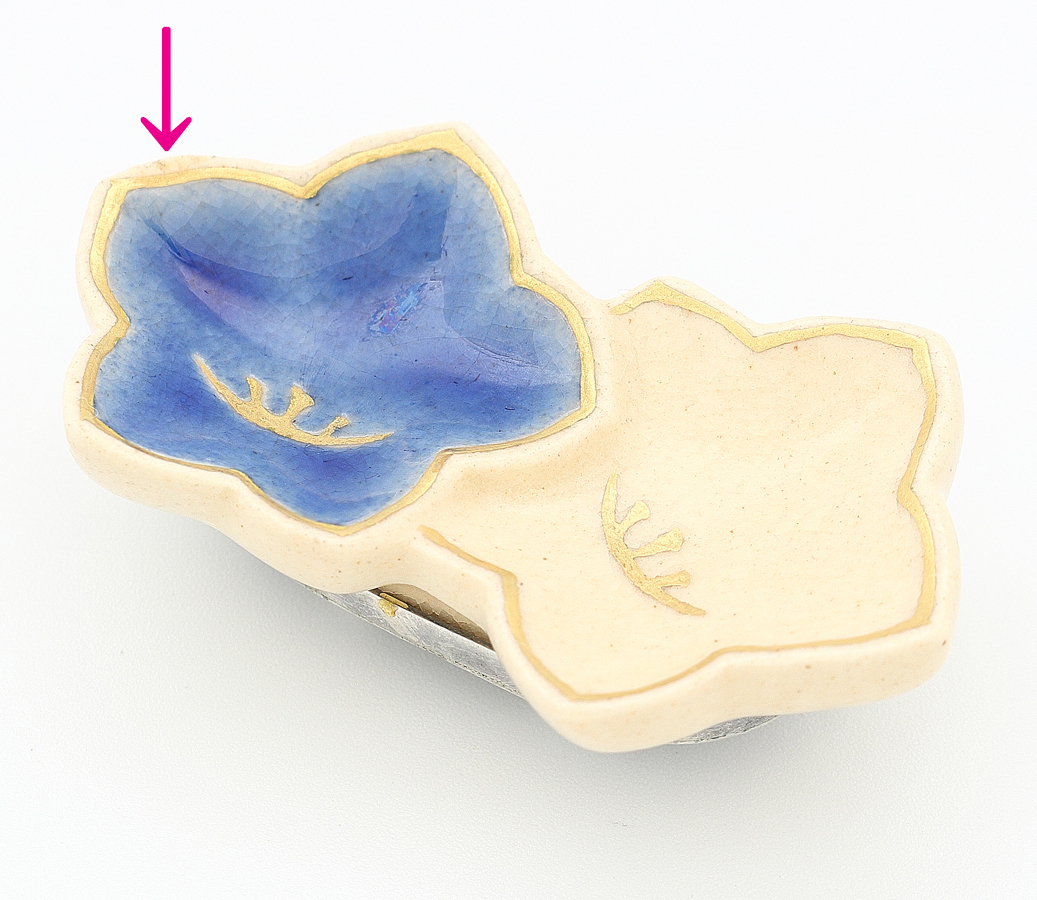 寸法・・・全長4.9cm 紐穴の内幅9mm 状態・・・画像矢印部分は釉薬が掛かっていません 詳細・・・京焼 金具にSILVERの刻印あり 補足・・・清水六兵衛作ではと推測しますが 銘がおそらく金具で隠れているため 詳細不明です | |