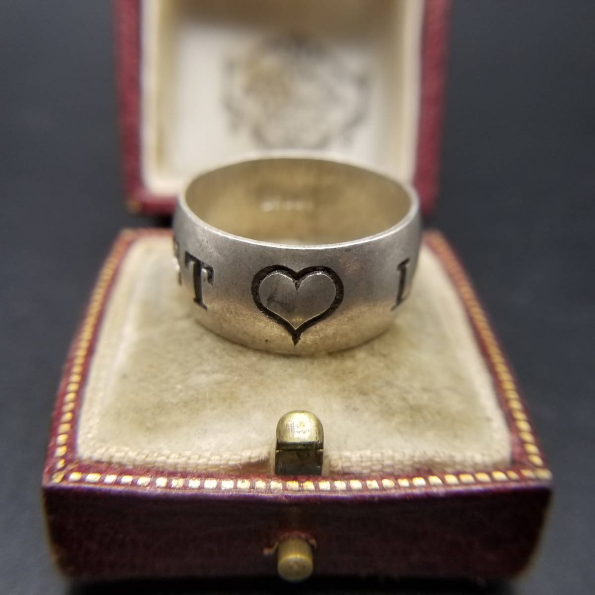 1992年 英国 Birmingham ホールマーク ヴィンテージ シルバー バンドリング LAST LOVE メッセージ 愛の言葉 銀 ペアリング 10Y-J⑧
