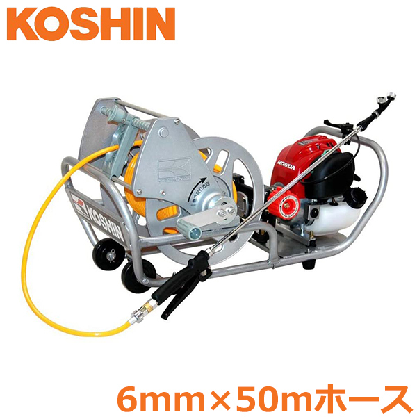 工進 動力噴霧器 エンジン 小型 動噴 ホース付き Φ6mm×50m MS-ERH50 4サイクル 動力噴霧機 消毒 除草剤散布
