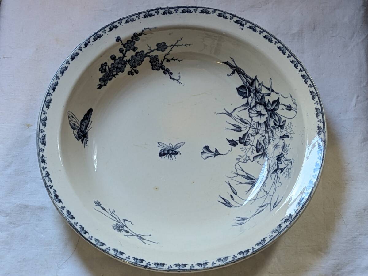 フランスブロカント購入 Sarreguemines サルグミンヌ Carmen 深皿 サラディエ 1900年前後 28cm 海外発送 (送料4300円)