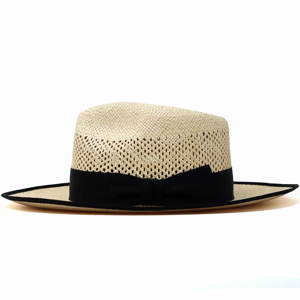 | 商品説明 | アメリカ老舗ハットブランド【STETSON / ステットソン】帽子好きには言わずと知れた同メーカーより高品質なパナマハットのご紹介です。ステットソンの代名詞ウィペットを、サイドの透かし編みで涼しげにアレンジした夏にピッタリの一品。フラットなワイドブリムとやや高めのクラウンが上品な印象です。ナチュラルな雰囲気の本体に、パキッとした色目のブラックのリボンが映える大人の為の上質な一品。エクアドル製の本パナマ帽、夏の装いを格段にクラスアップできる効果的なアイテムです。※すべり裏のマジックテープアジャスターにて約-3cmサイズ調整が可能です。 |