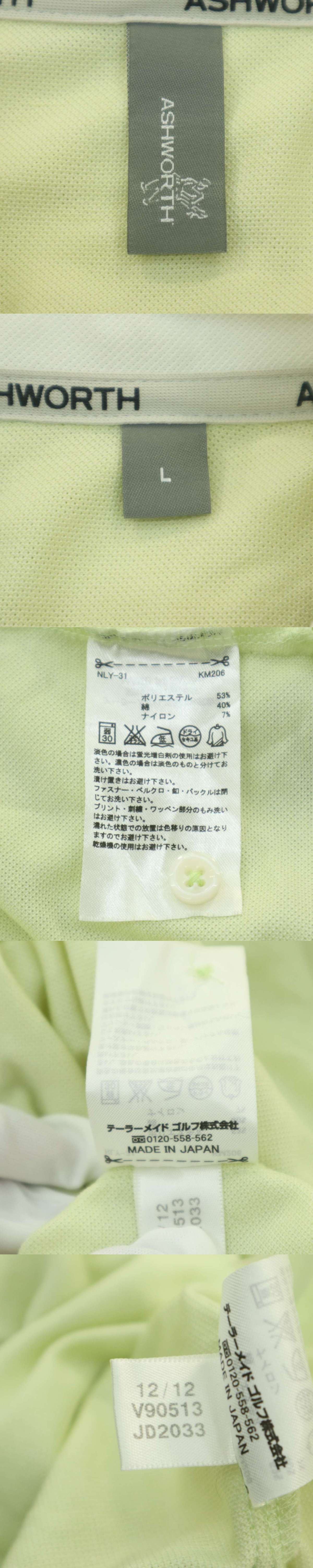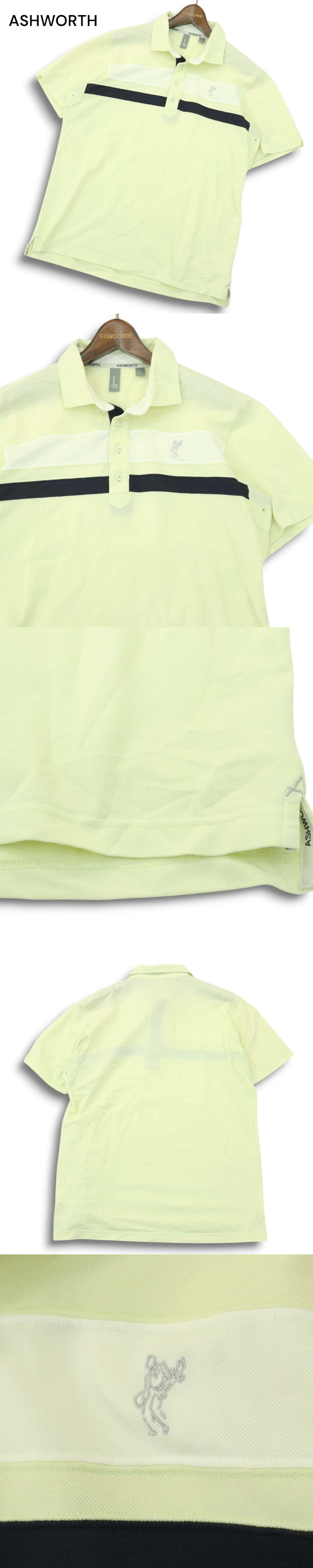 ASHWORTH アシュワース ゴルフ 春夏 ロゴ刺繍 半袖 鹿の子 ライン ポロシャツ Sz.L メンズ