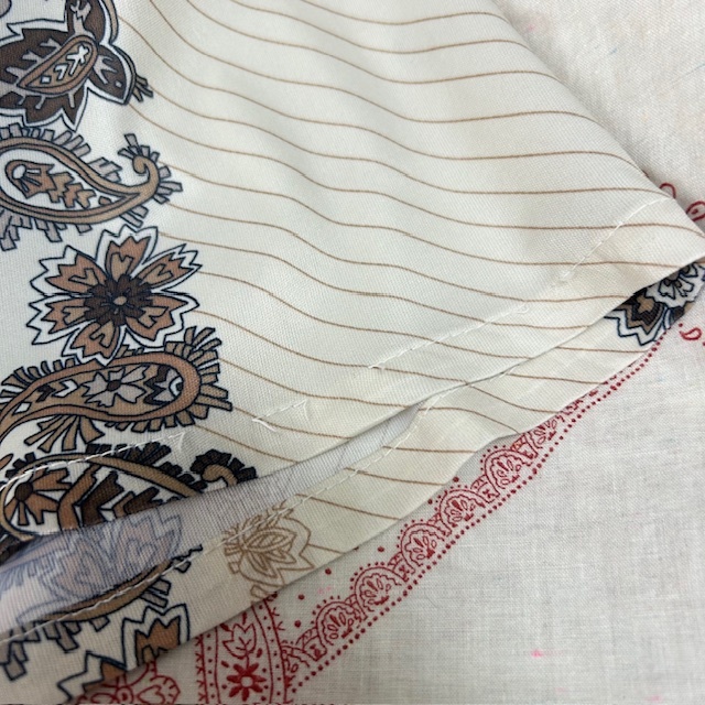 sh●938 USA古着 70s USA製 ペイズリー柄ライン 開襟ポリシャツ M 薄ベージュ オールド ヴィンテージ アメリカ古着 レトロ 半袖 春夏 薄手