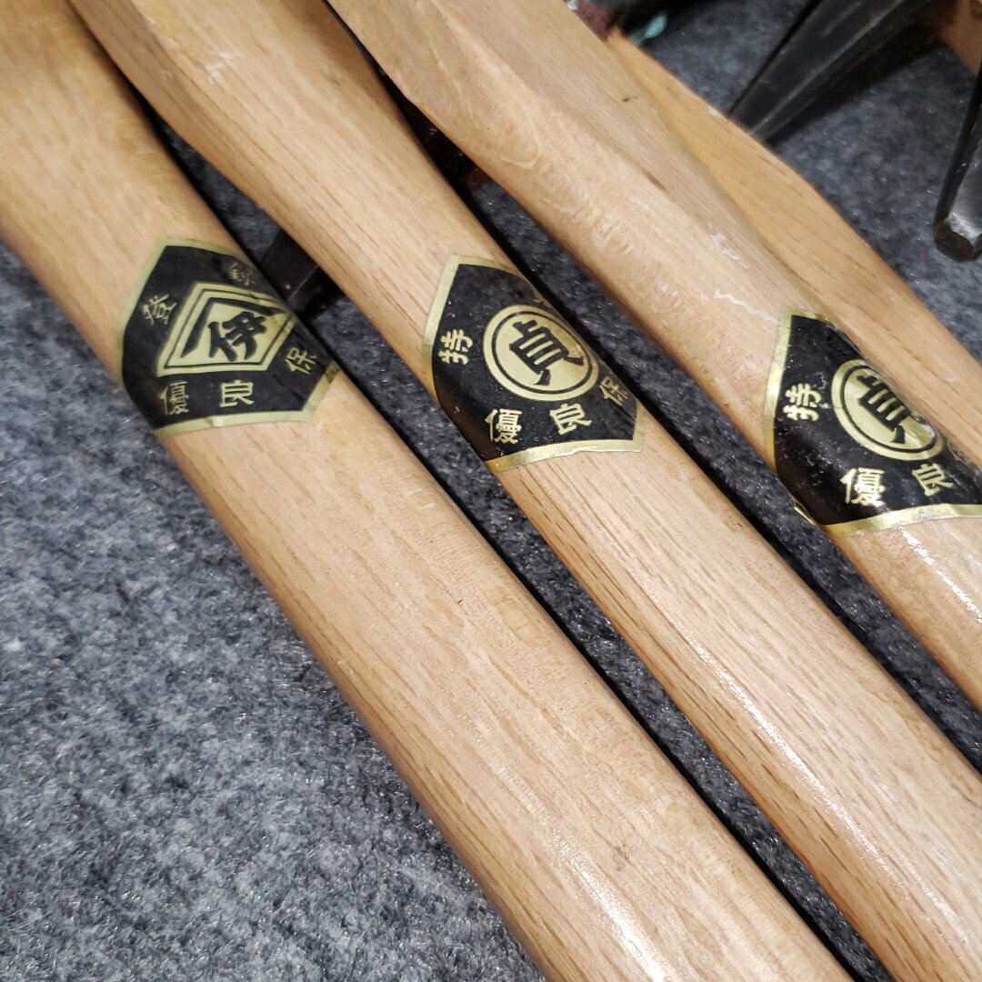 古い金槌のまとめ売りです。錆や汚れ、擦れがあります。4本は「伊」のシールが貼ってあり、2本は「貞」のシールが貼ってあります。「貞」の方が0.5mmほど小さいです。※ばら売りは考えておりませんのでご了承ください。