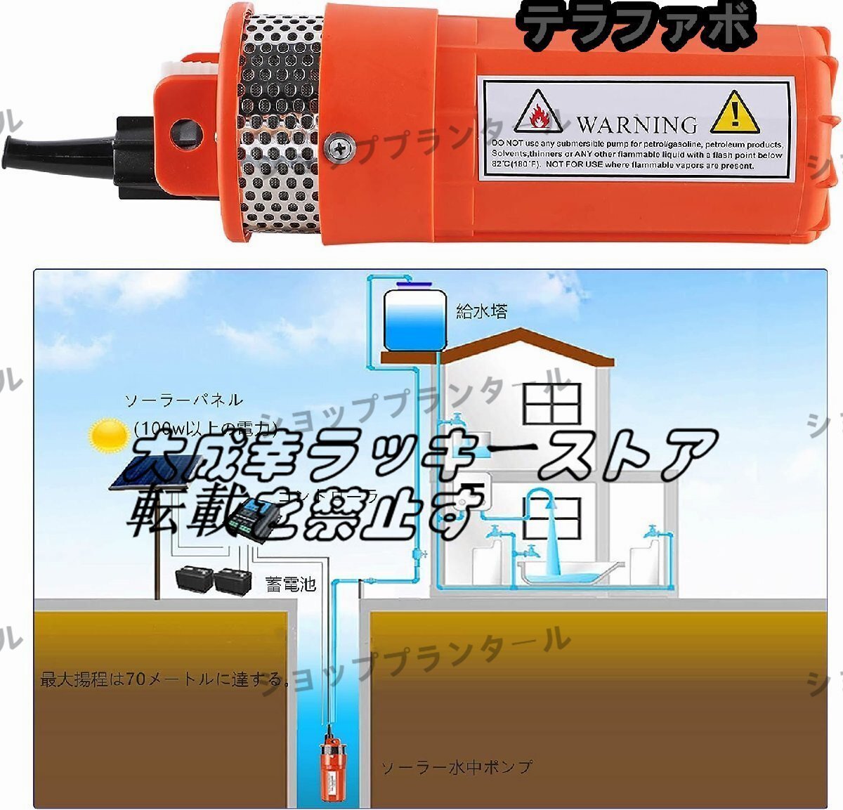 水中ポンプ ソーラーパネル 水中井戸ポンプ 深井戸水中スクリューポンプ 太陽光送水ポンプ ソーラーポンプ 小型ポンプ 潜水ポンプ 6L (12V)