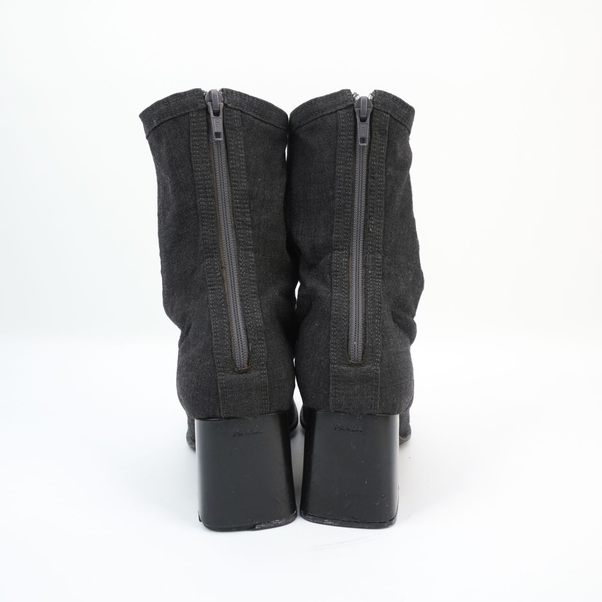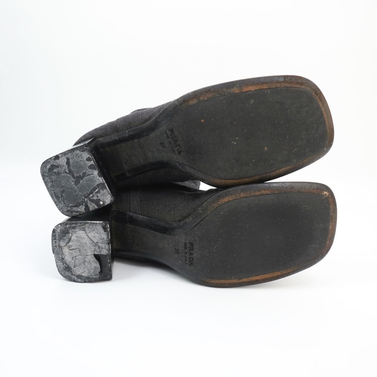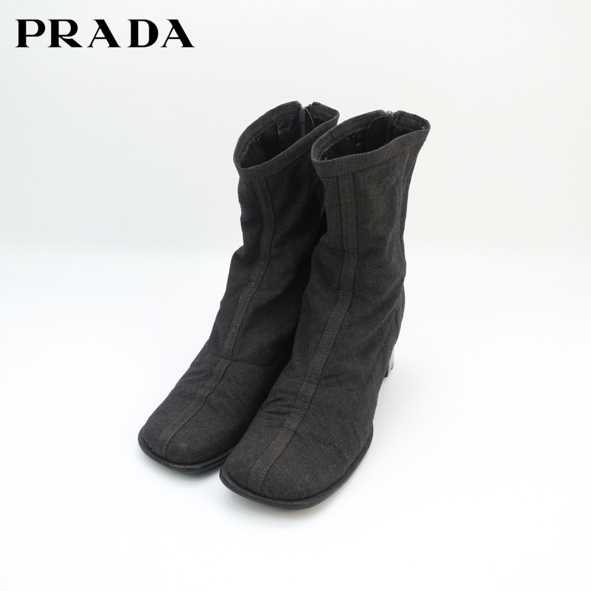 PRADA プラダ 37 23.5 チャンキーヒールショートブーツ ブーティ スクエアトゥ 墨黒 黒 ブラック ダークグレー/ED86