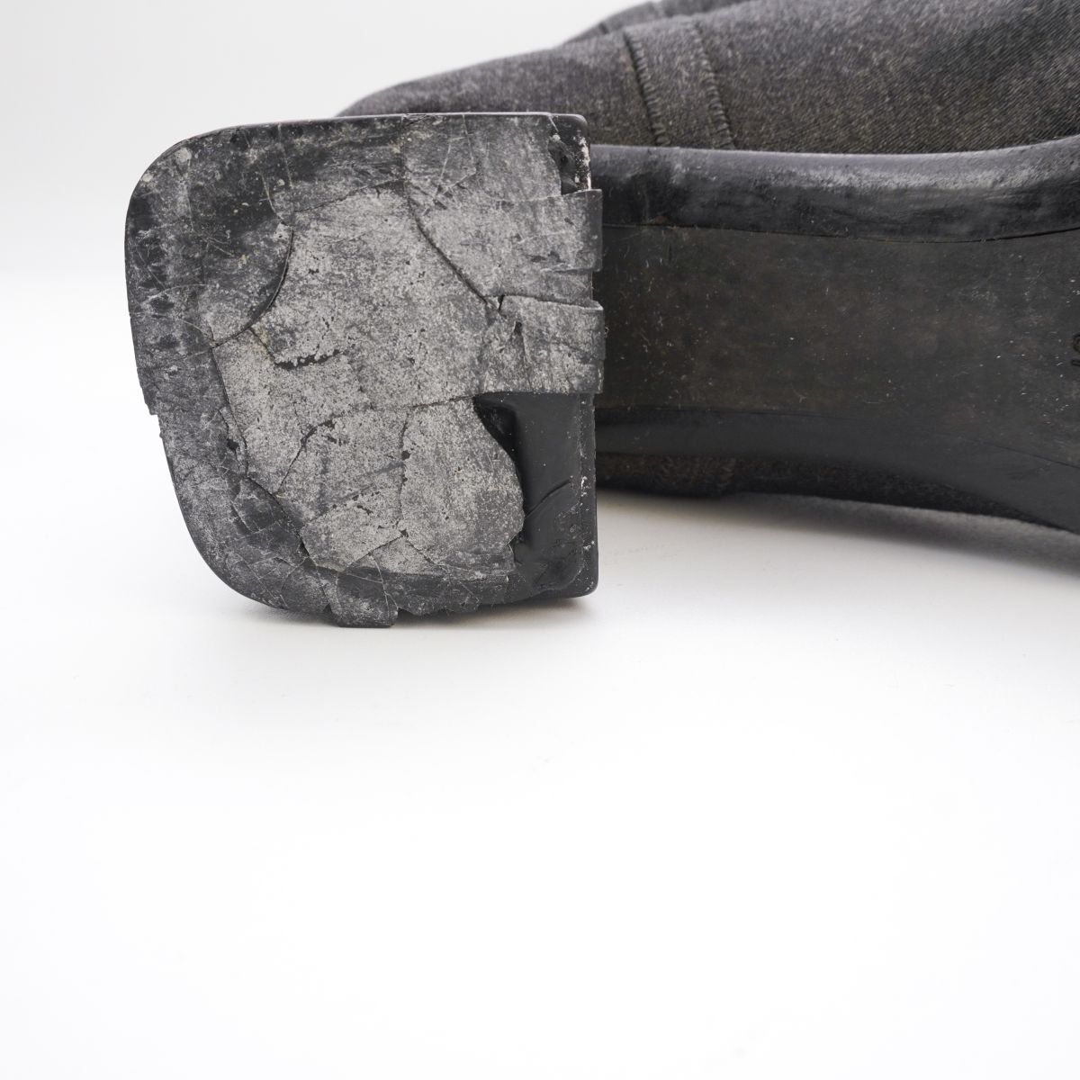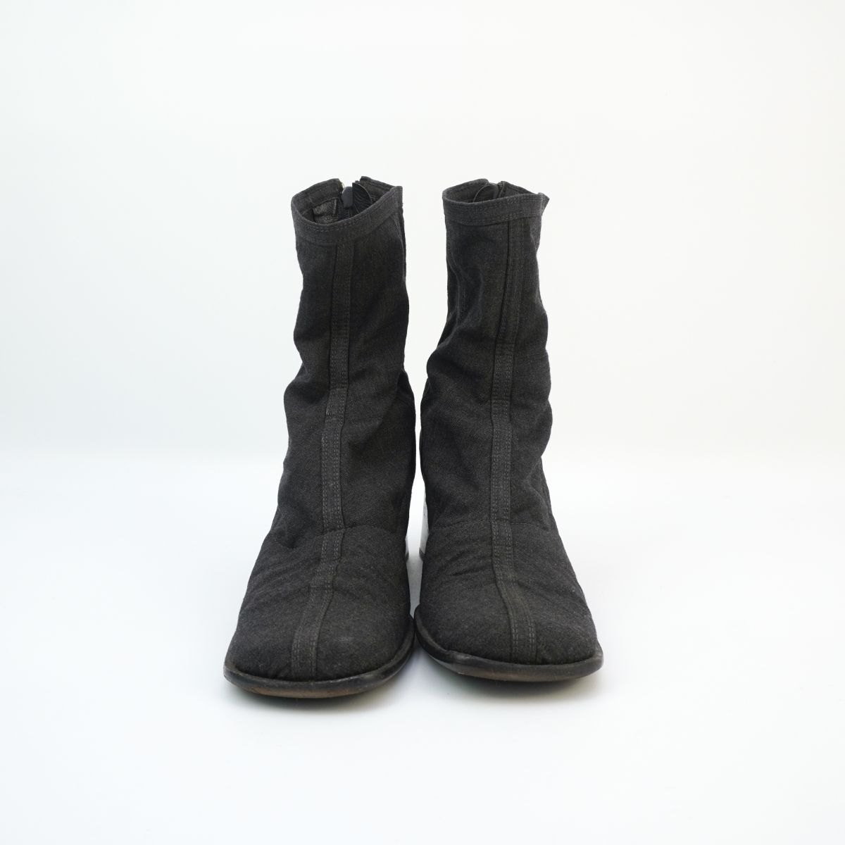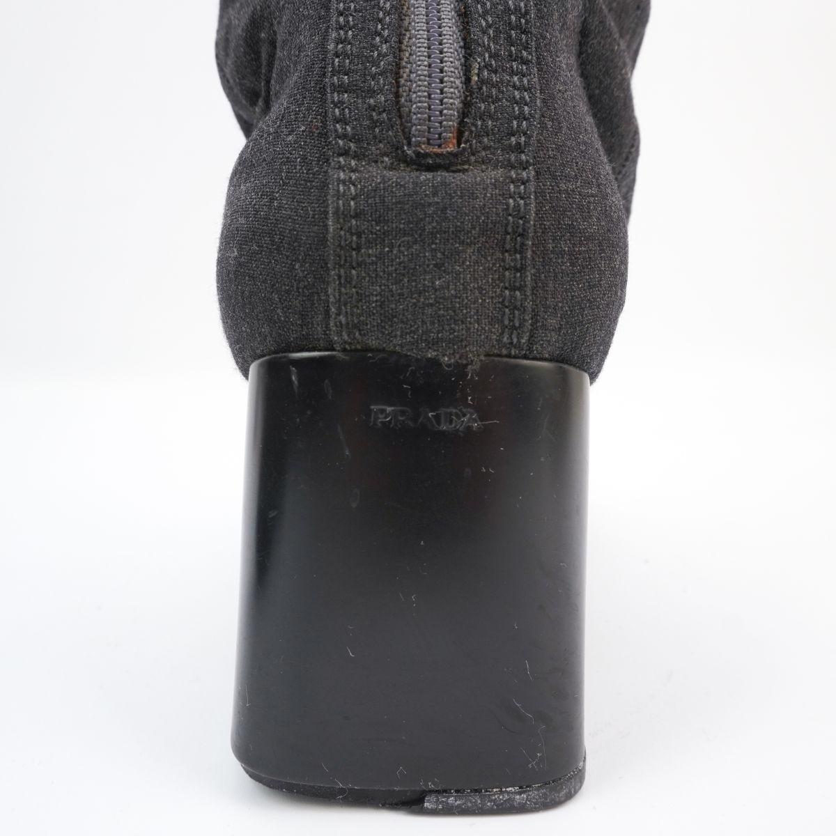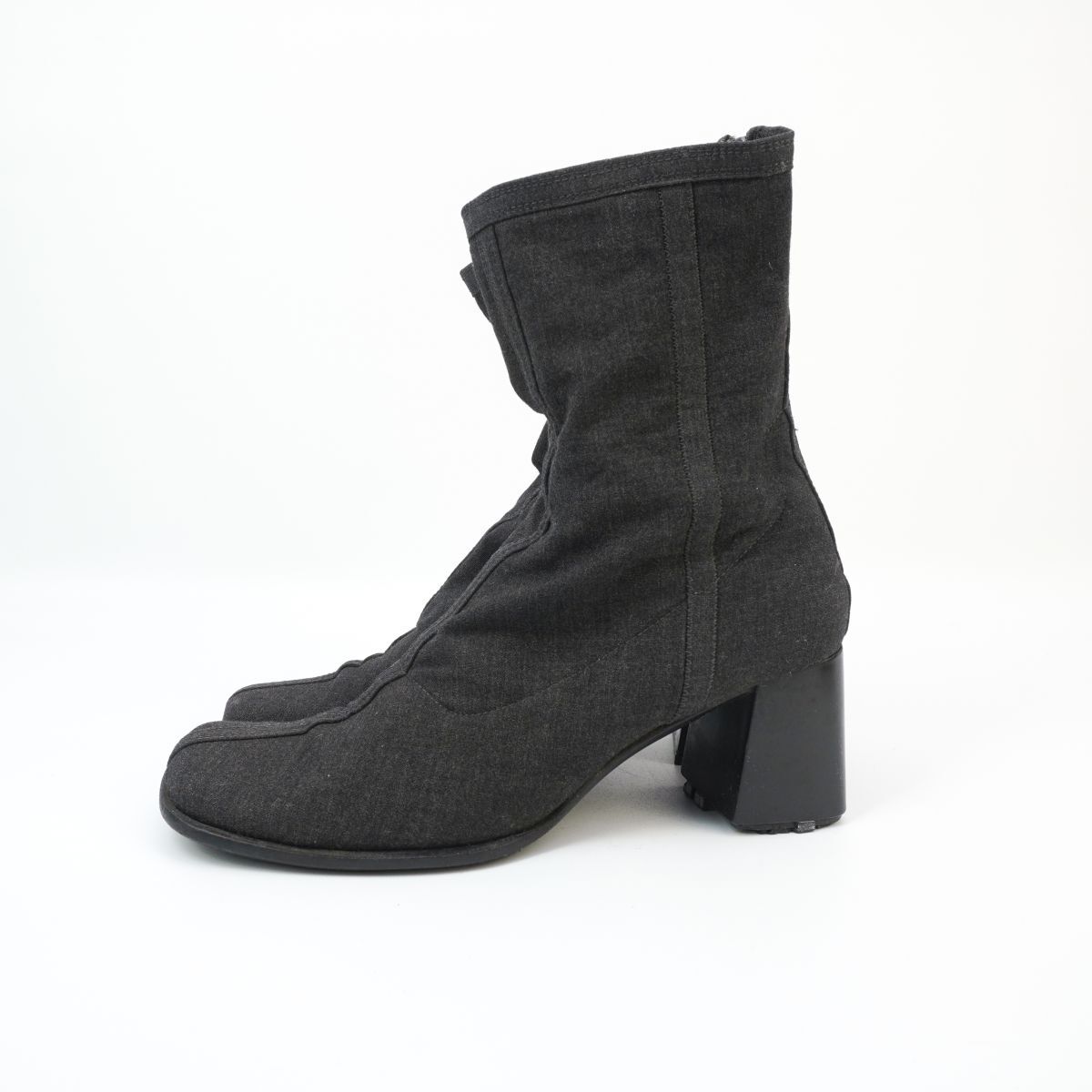 PRADA プラダ 37 23.5 チャンキーヒールショートブーツ ブーティ スクエアトゥ 墨黒 黒 ブラック ダークグレー/ED86