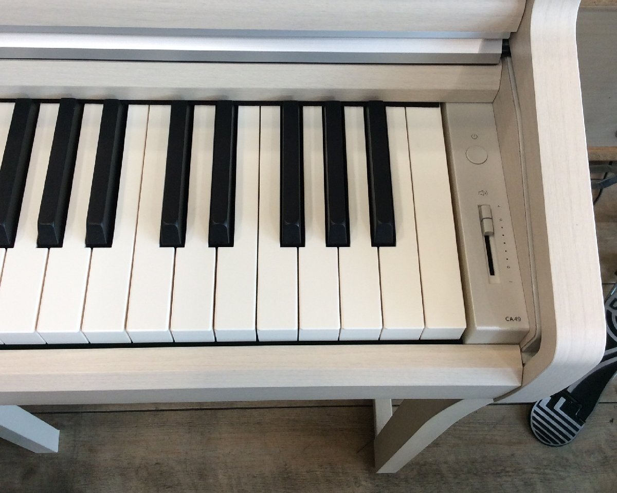 『店頭引き渡し限定』 ※こちらの商品は配送不可商品となりますので当店(岐阜県各務原市)まで取りに来ていただける方限定で販売させていただきます。 『自社配送のご案内』 ※近隣地域の方は自社配送も承っております。配送可能地域や料金につきましては事前にご相談くださいませ。 ◇88鍵シーソー式木製鍵盤を搭載したデジタルピアノ。鍵盤の動きを3つのセンサーできめ細かく感知し、グランドピアノ独特の表現力を再現する。中低音スピーカーと高音専用スピーカーを左右それぞれに搭載することで、グランドピアノの繊細かつ豊かな音色を実現。操作パネルは有機ELディスプレイを搭載。視認性が高く椅子に座ったままでも表示内容が見やすく、操作をスムーズに行える。 <商品について> ■メーカー:カワイ ■シリーズ:Concert Artist ■型番:CA49A ■鍵盤数:88 鍵 ■最大同時発音数:192音 ■音色数:19 ■ヘッドフォン端子:2系統 ■録音機能:〇 ■ヘッドフォン:〇 ■椅子:〇 ■スマホ・タブレット連携:〇 ■重さ:58㎏ ■サイズ:W1360×D460×H915mm ■付属品:画像のものですべて ■説明書:無し ※椅子に小さなヤブレ、汚れあります。 <コンディション> ◎こちらの商品は、USED品のため、使用に伴う小傷、汚れ等はございますが、大きく目立つ傷や汚れ、損傷はございません。お勧めの商品です。 |