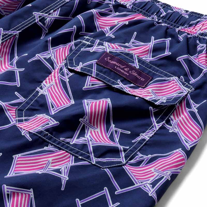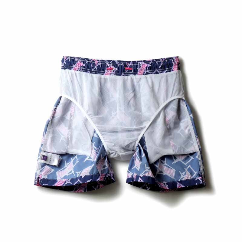 デッキチェア柄プリントナイロンスイムショーツ