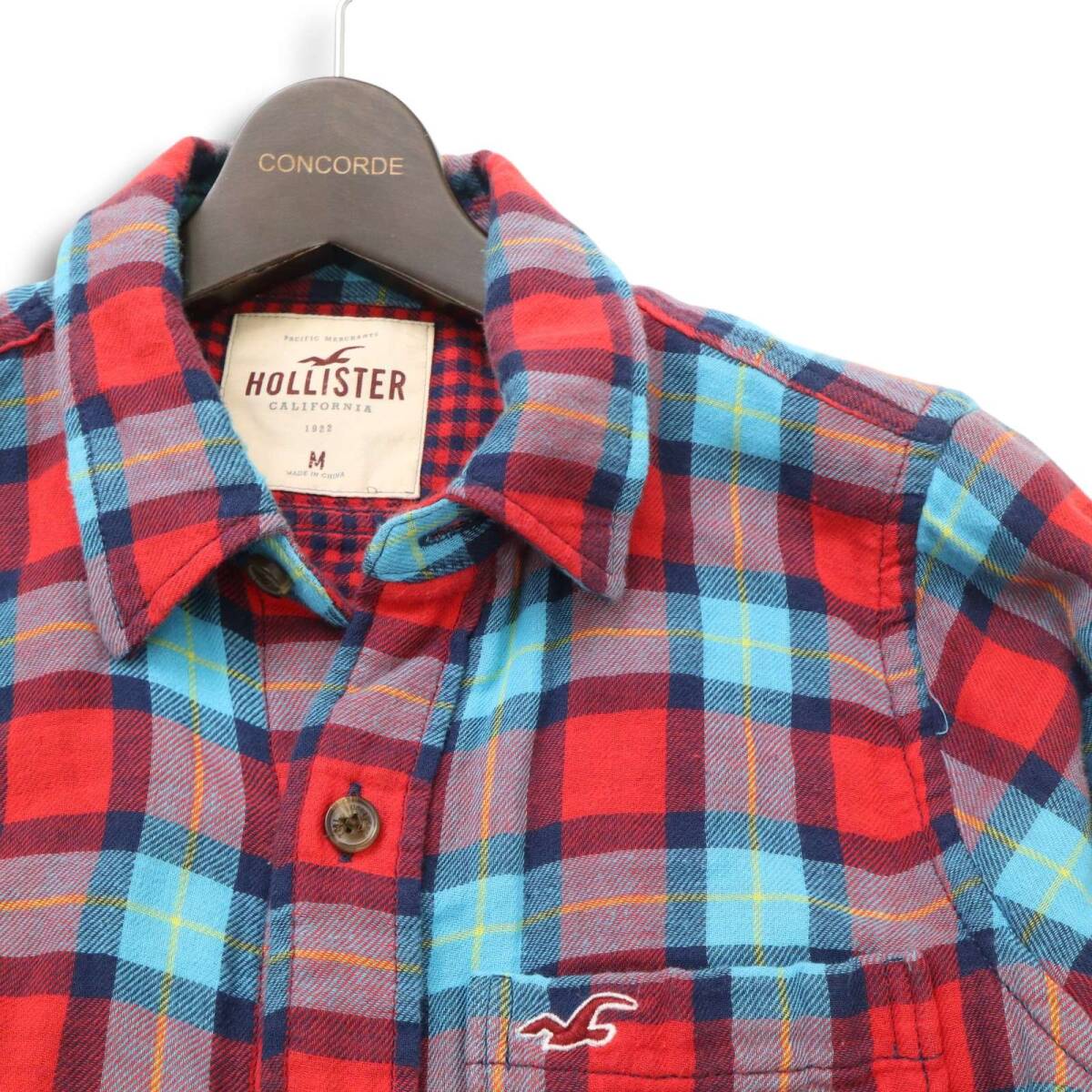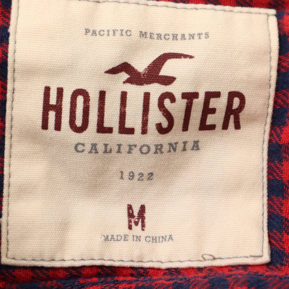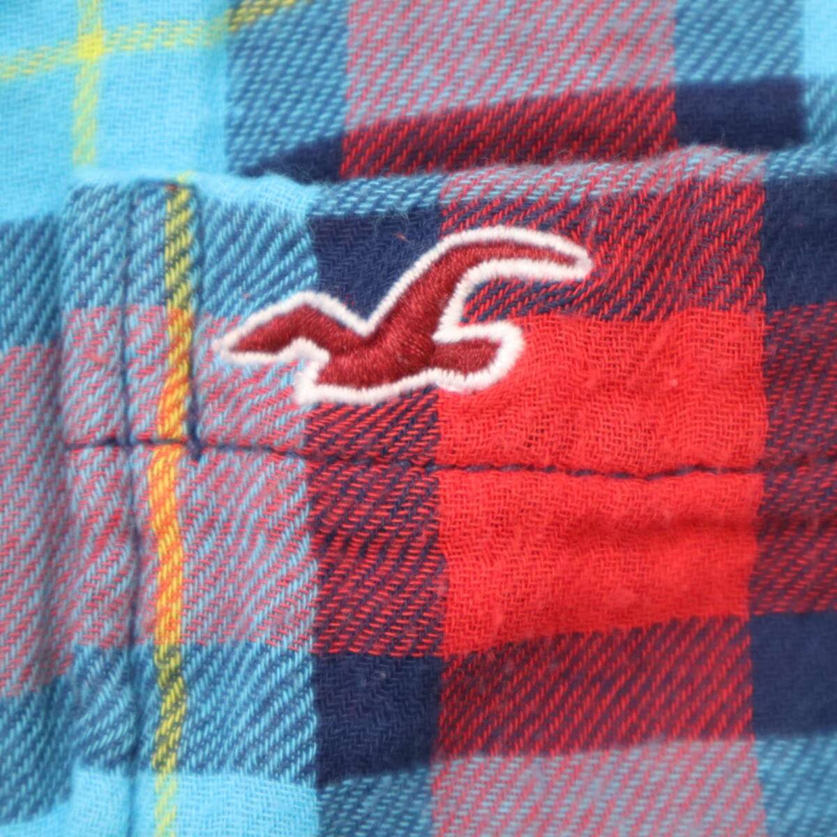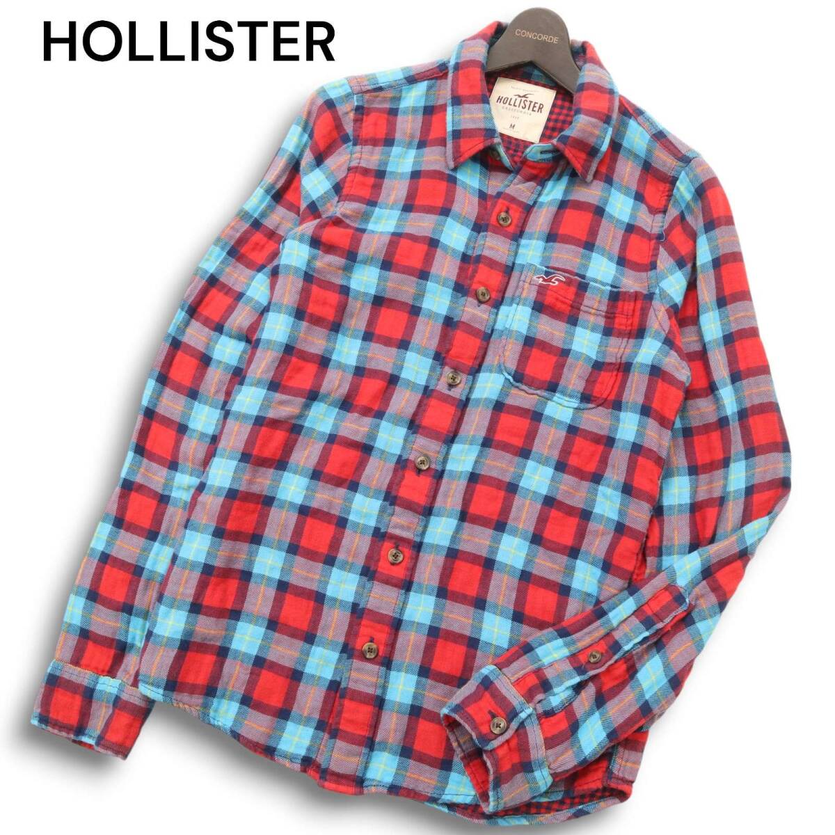HOLLISTER ホリスター 通年 ロゴ刺繍★ Wガーゼ 長袖 チェック シャツ Sz.M メンズ 赤