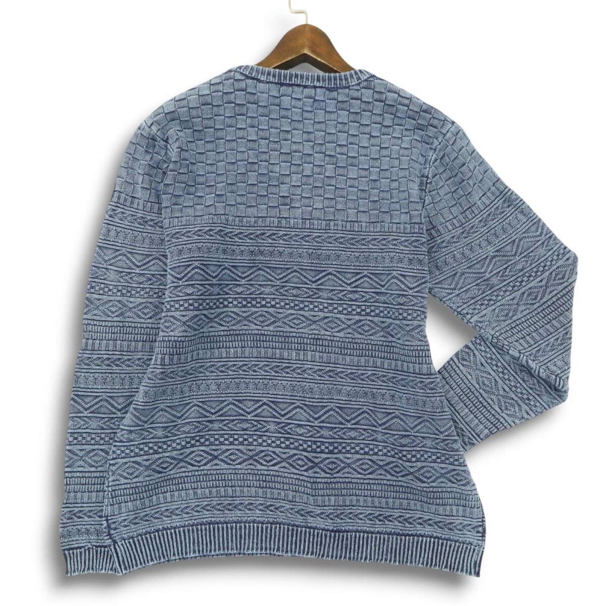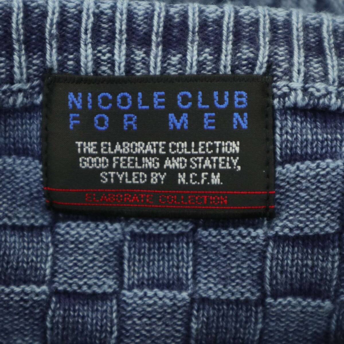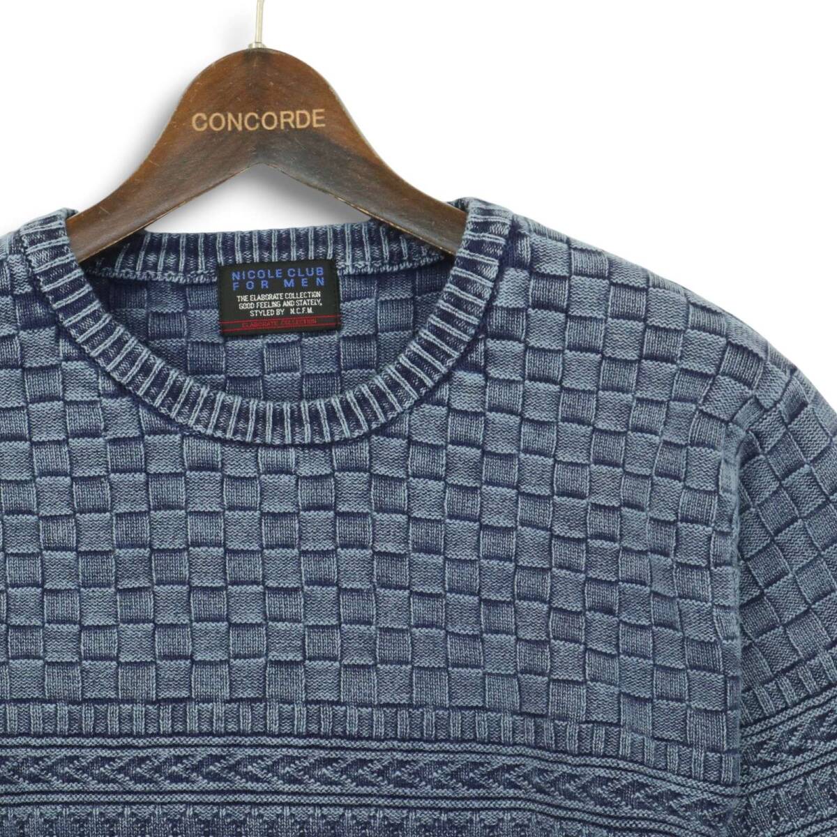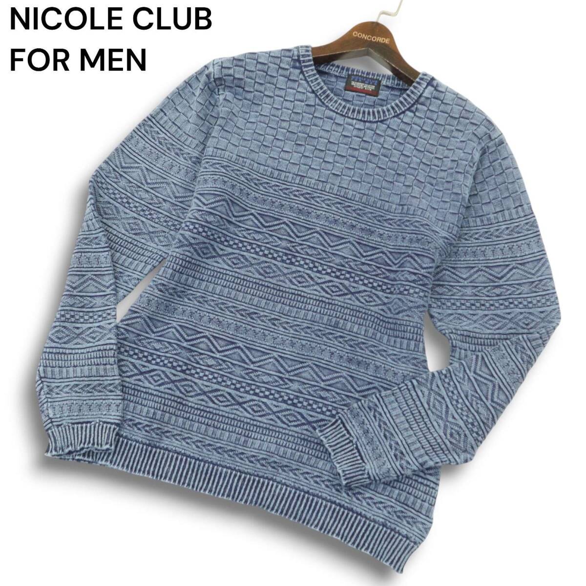 NICOLE CLUB FOR MEN ニコルクラブ フォーメン インディゴ★ 幾何学柄 ジャカード コットン ニット セーター Sz.50 メンズ