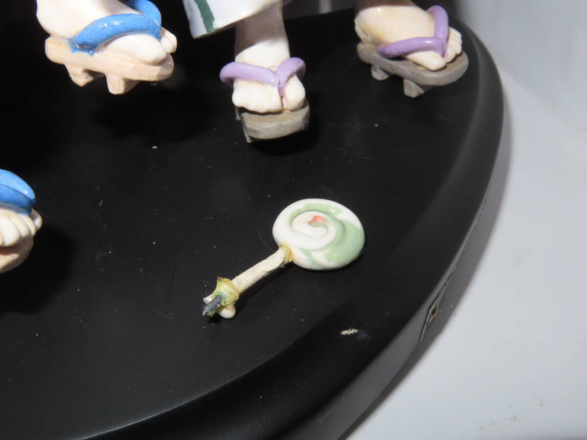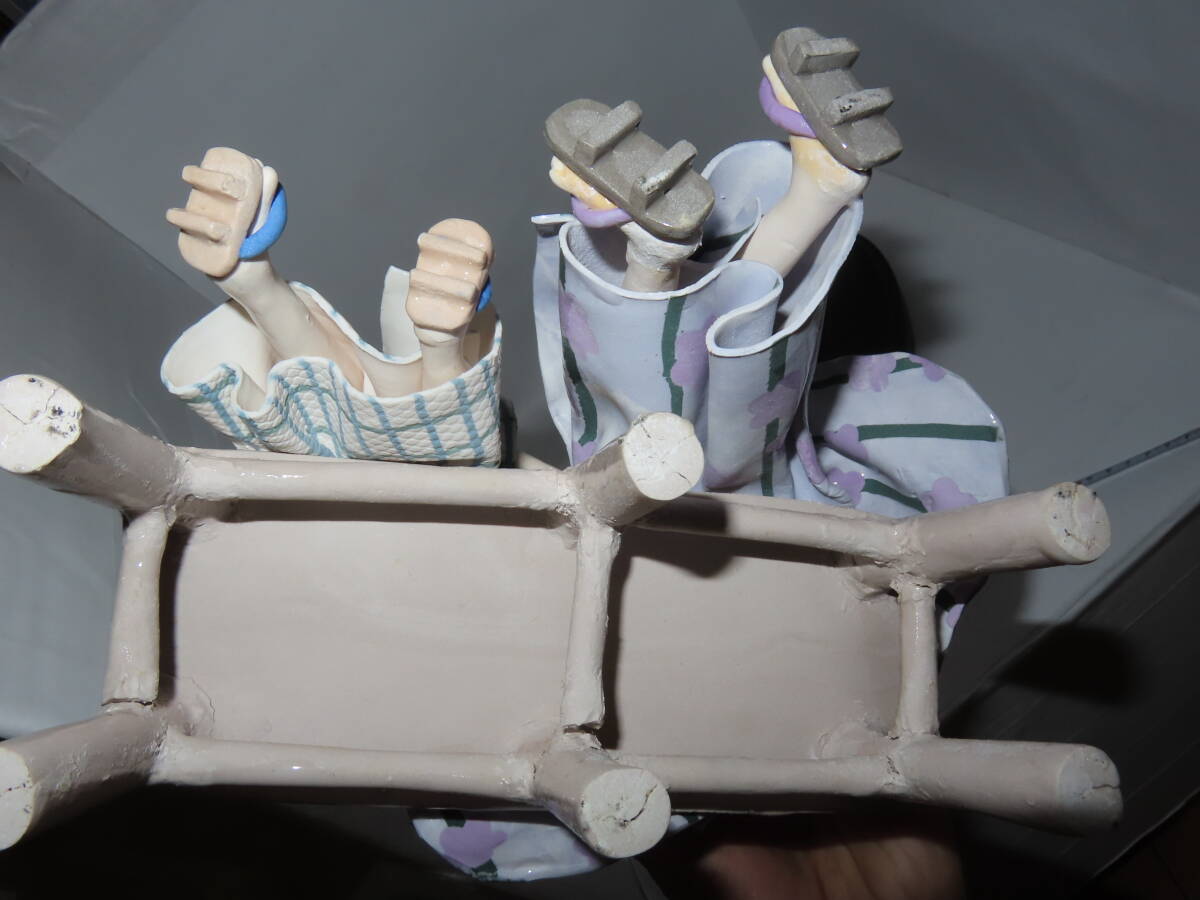 | 商品説明 | 当方、素人ですので画像をご確認お願いいたします。 ◆画像の物がすべてですので不明な点あるようでしたらご質問にて 対応いたします。 個人の経年保管品となります。 中古品です。 購入時からこのような状態です。 きれいな状態かと思いますが 細かい部分で破損があるかもしれませんので 現状品とさせていただきます。 ベンチの裏の接着が取れている部分・接着部分のひびがございますが 現状は問題ございません。 あと写真のように飴をもつ指が破損しております。 他にも多数の粘土陶器作品を出品しております。 現状品です。 全てまとめてダンボールに入れての発送となります。 個々で梱包できませんので その点のご理解の上お願いいたします。 格安からのスタートですので現状を確認したうえでNC・NRでお願いいたします。 他にも多くのアイテムを出品しておりますのでそちらもお願いいたします。 | |