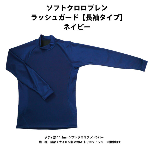 【日本製 即納】ソフトクロロプレンラッシュガード レディースM ▲ネイビー/夏用/日焼け・クラゲ対策◆
