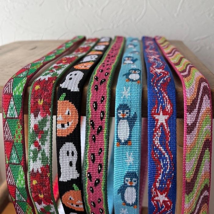 同柄の、サイズ違いの首輪、リード、ハーネス、キーホルダーなどもございます。