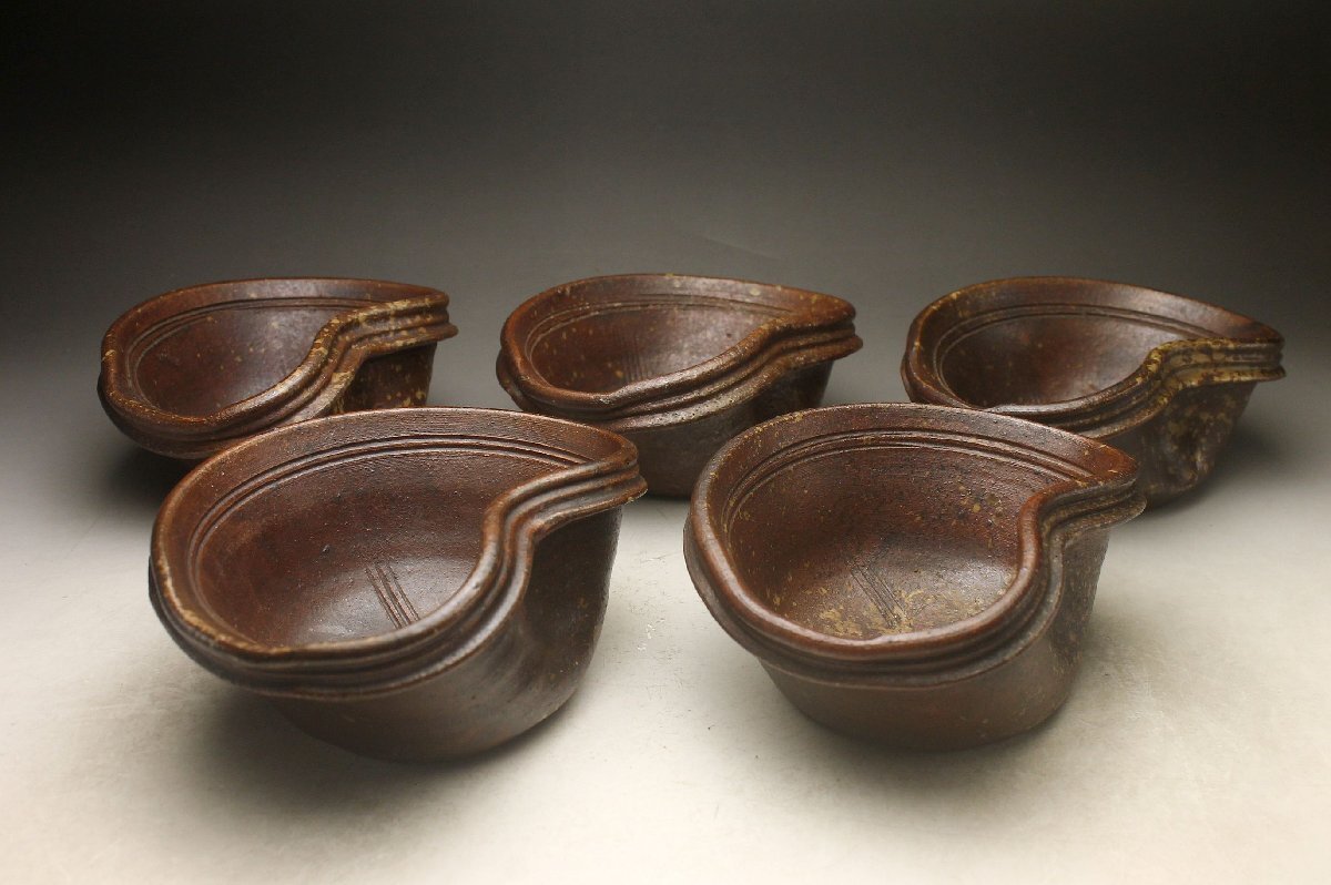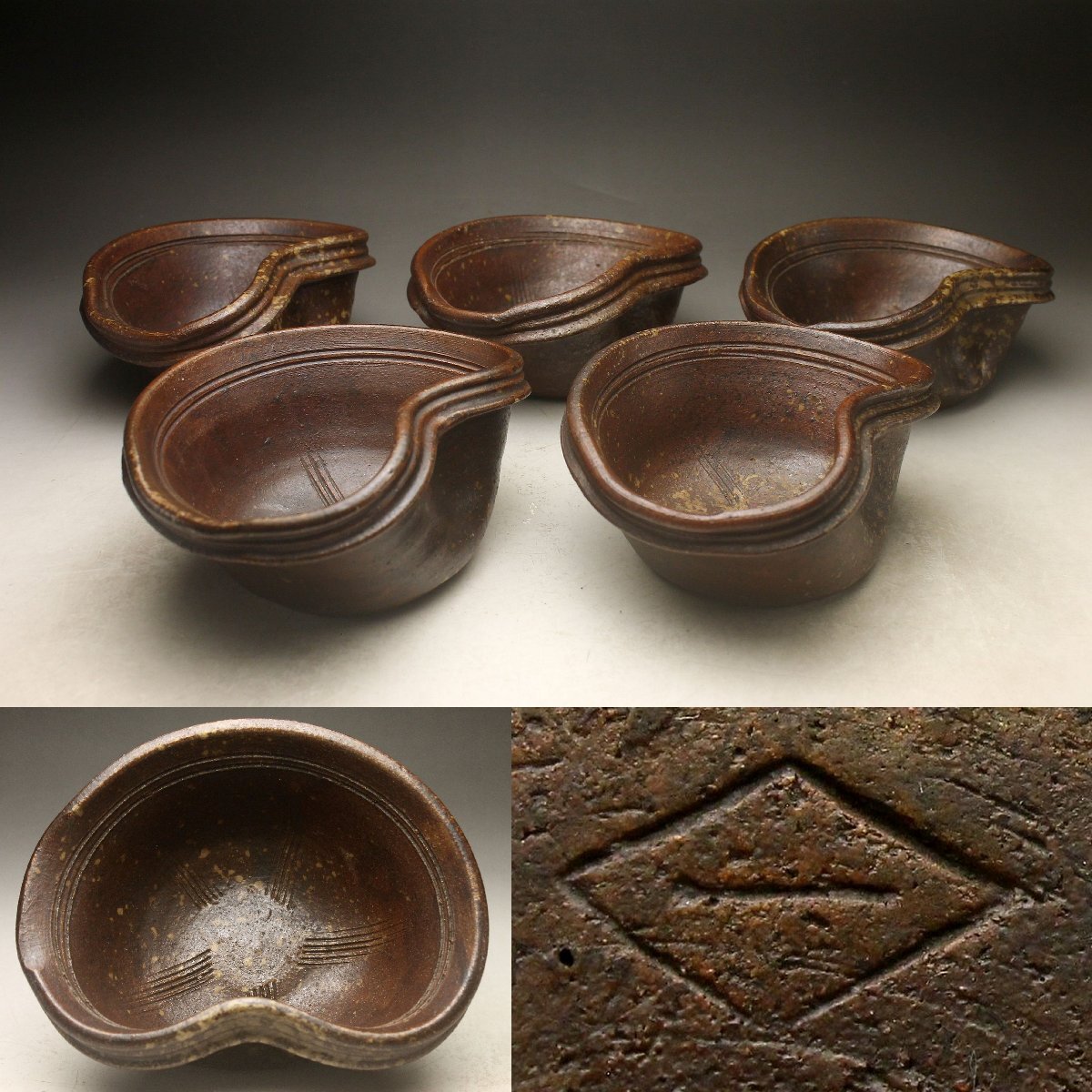 【余韻】 備前焼 木村長十郎友敬 木村興楽園 形変鉢揃(5客)★無傷美品 懐石道具 茶道具<同梱可>