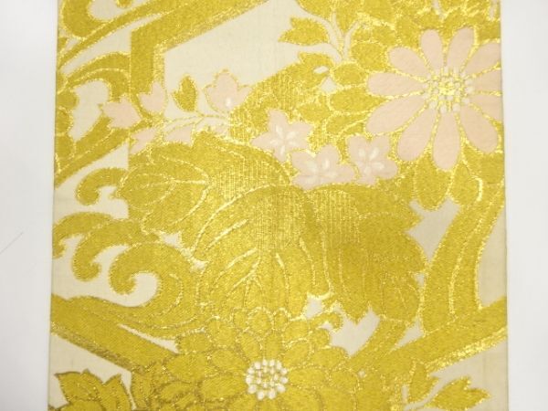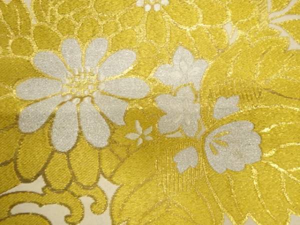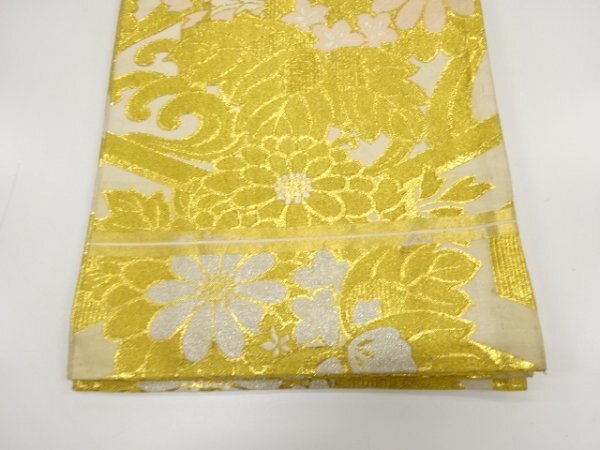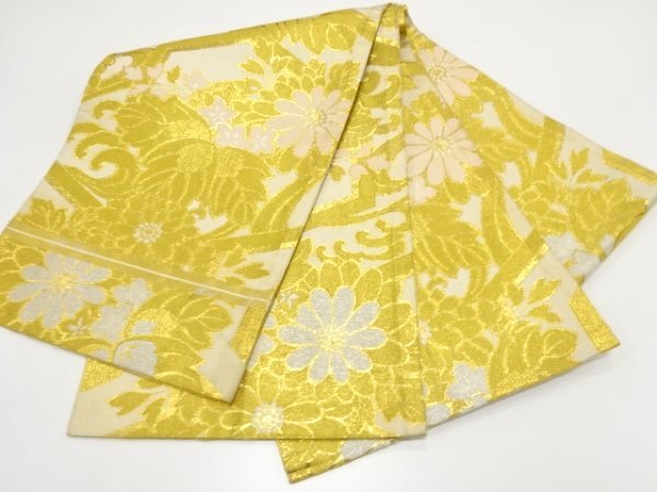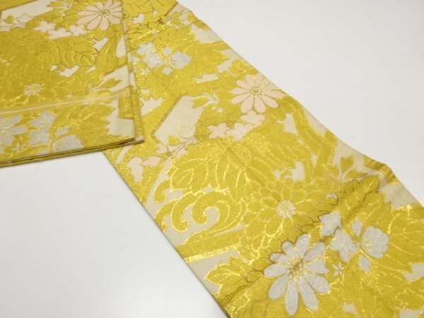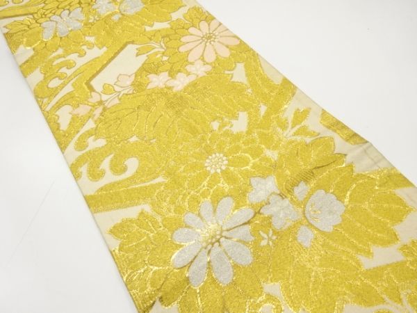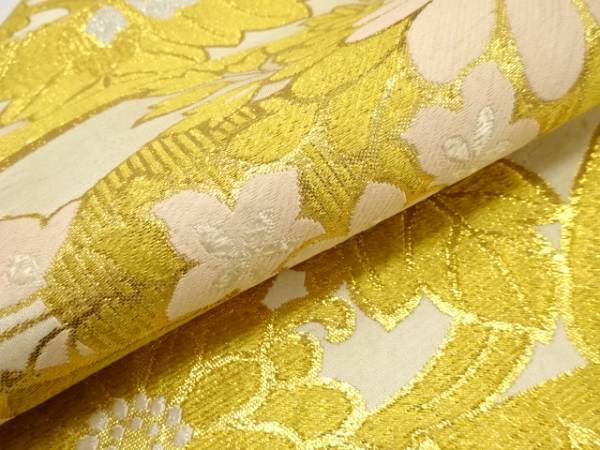 ys7450071; 亀甲に桐・菊・荒波模様織り出し丸帯(材料)【アンティーク】【着】