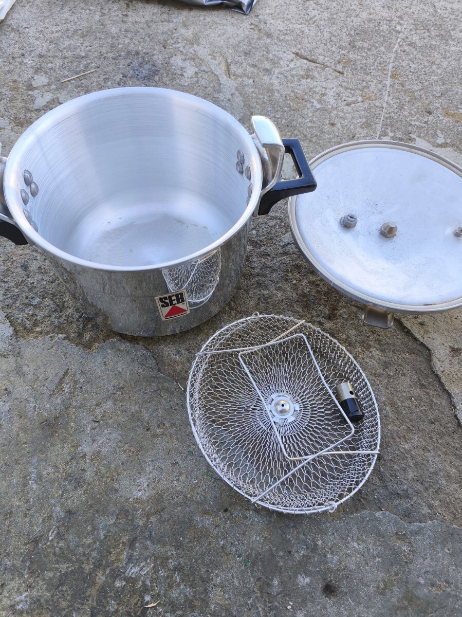 両手圧力鍋・フランスセブ SEB ONYX 6.0 6l IH非対応 蒸し器付。 未使用に近い 圧力未確認。現状品 多少汚れが有り。 画像ご確認にて、ご判断とご理解頂いた上でご入札をお待ちしております。現状品お渡し、ノークレーム、ノーリターンで宜しくお願い致します。