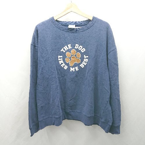 ◇ ⊇ Melville メルヴィル アニマル 手形プリント 裏起毛 長袖 トレーナー サイズXXL ネイビー レディース E
