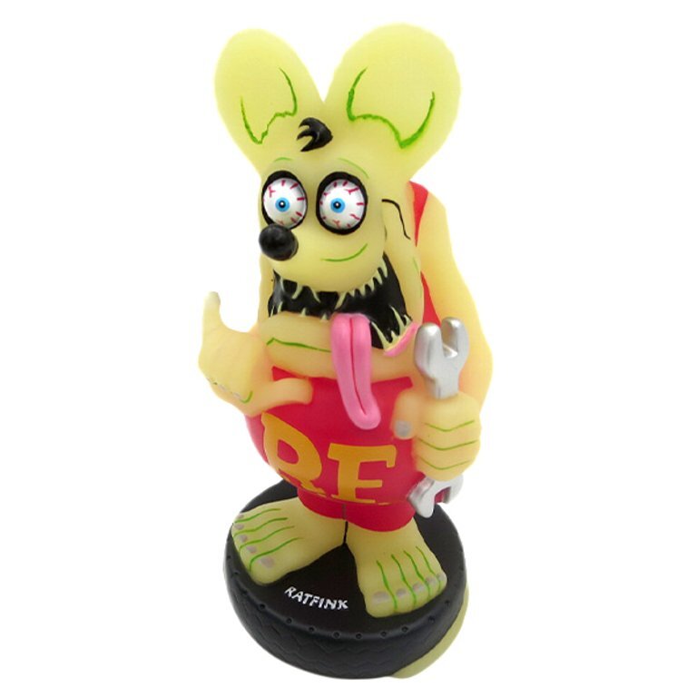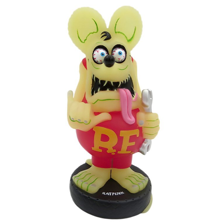 【204373】FUNKO ファンコ社のラットフィンクのワッキーワブラー ボビングヘッドです。ラットフィンクがタイヤの上でレンチを握りながらポーズを決めております♪お店の R.F. コーナーやお家のリビングやガレージ、玄関などに置いとけばとっても絵になるアイテム♪ラットマニアにもきっと満足してくれるそんなアイテムです。【サイズ】W75/D75/H190mm(パッケージ)W75/D75/H170mm (商品本体)■素材・PVC