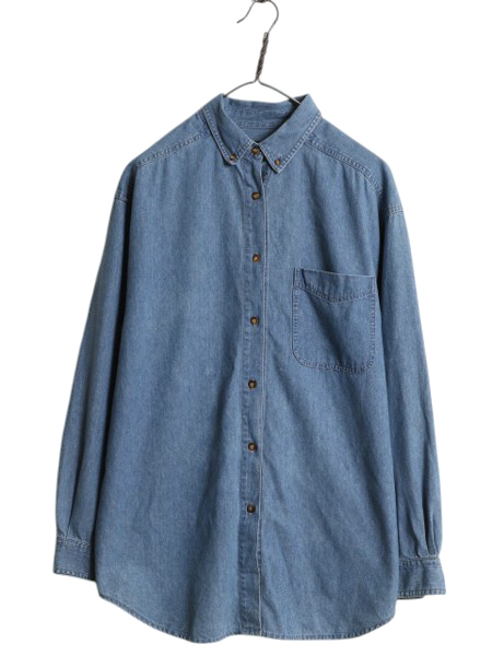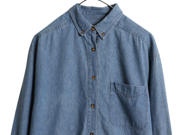 | 商品名 | 80s 90s エディーバウアー ボタンダウン 長袖 デニム シャツ レディース L ヴィンテージ アウトドア 長袖シャツ コットン ポケット付き BD |