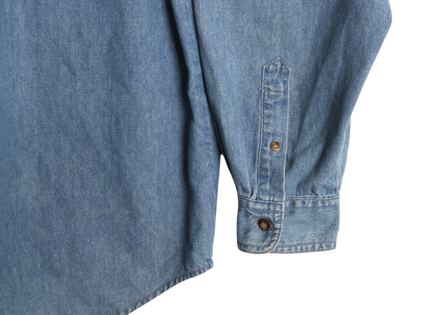 80-90年代のオールド ヴィンテージ エディバウアー の 長袖 デニムシャツです。 素材は、100% COTTON 柔らかいミディアムオンスのコットンデニム タフに使用できる素材が使用されています。 人気のボタンダウンスタイル 左胸にパッチポケット付き 合わせやすい、ブルーデニム 使い勝手の良いシンプルな無地のグッドデザイン ゆったりとした、人気のシルエット 程良く使い込まれた古着ならではのルックス 人気のデニム地、これだけで様になる 長く愛用して頂ける商品です。 |