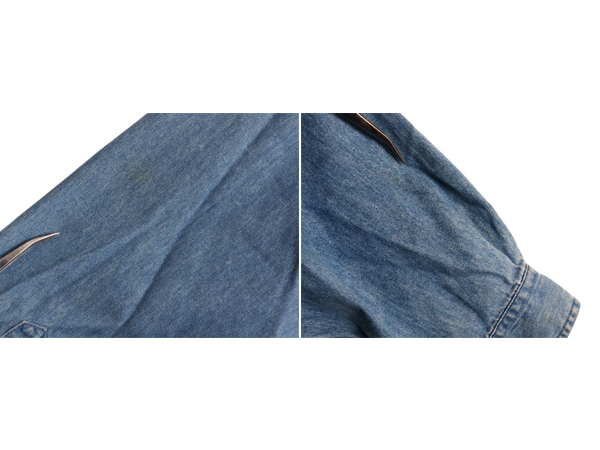 | 商品について | 一見して分かる目立つヨゴレやダメージは商品画像や商品説明に記載はしていますが 着用に支障が無いと判断した物や裏側等の着用時見えない場所、古着慣れされている方 なら問題無い範囲内と判断したヨゴレ、小さなダメージの説明は省いている場合があります。 (その様な場合でもこちらの判断で良品、美品と記載している物もあります) 見えない場所や細かいヨゴレ、ダメージの気になる方はご購入前に必ずご相談下さい。 サイズについては多少の誤差はご了承願います。 撮影時の光や環境、ご使用のブラウザによって実際の色と異なる場合があります。 写真と商品説明文を確認して、少しでも気になる点があれば必ずご入札前にご質問下さい。 |