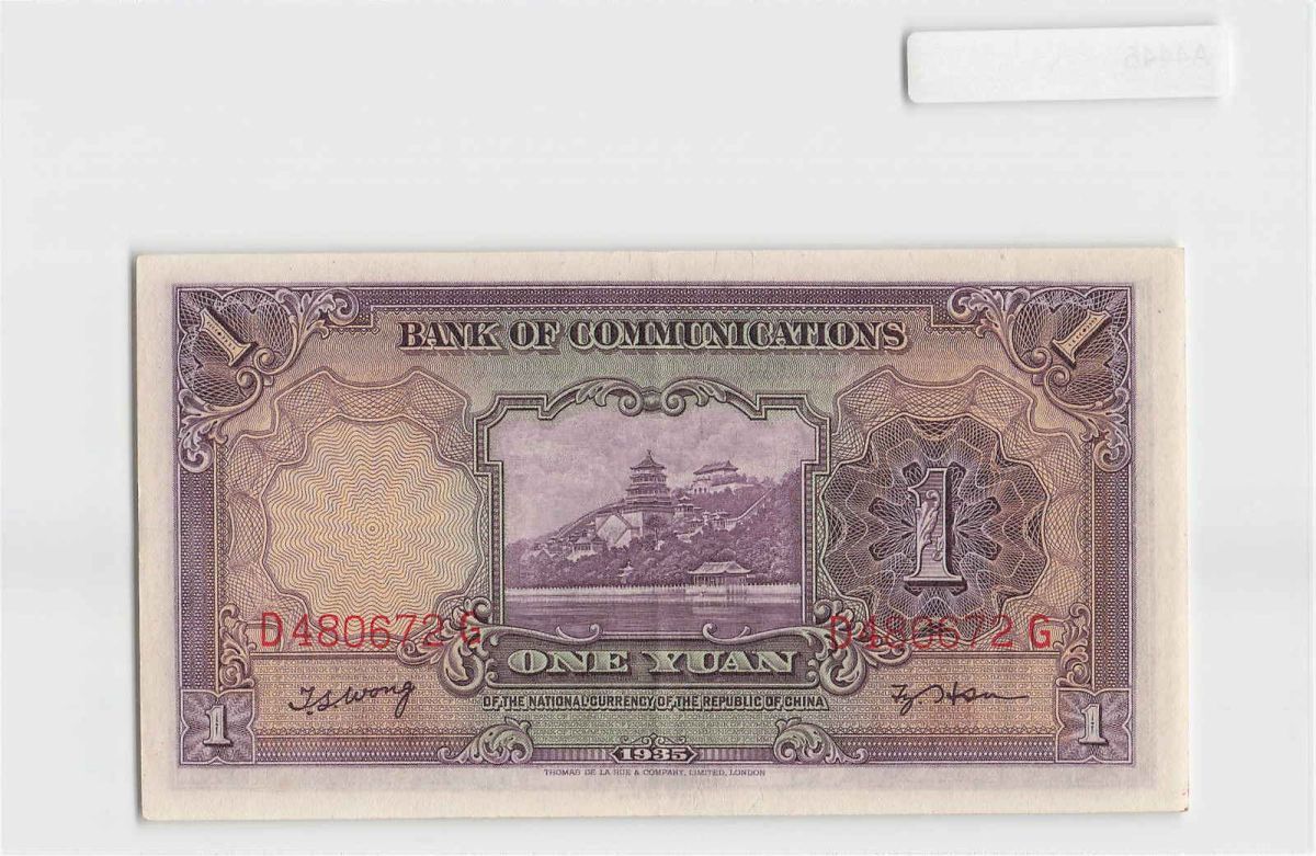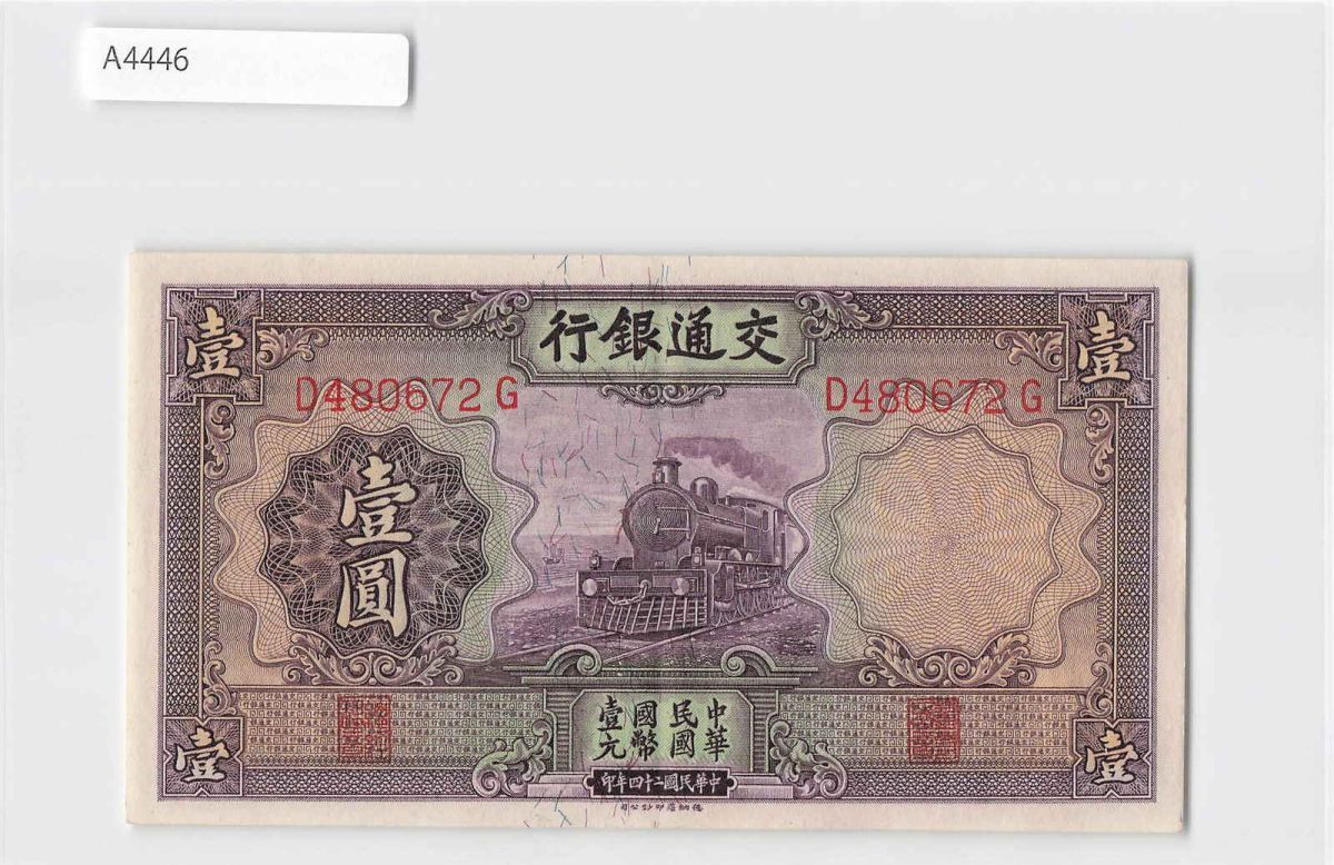 *[令]中国紙幣 交通銀行 1圓(1935)[A4446]7l9