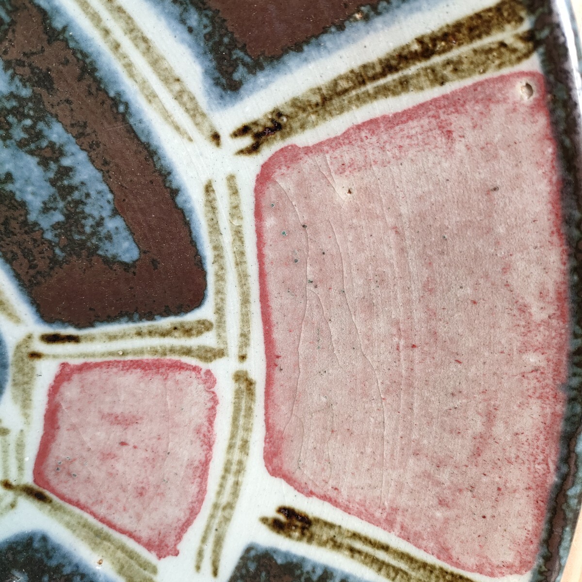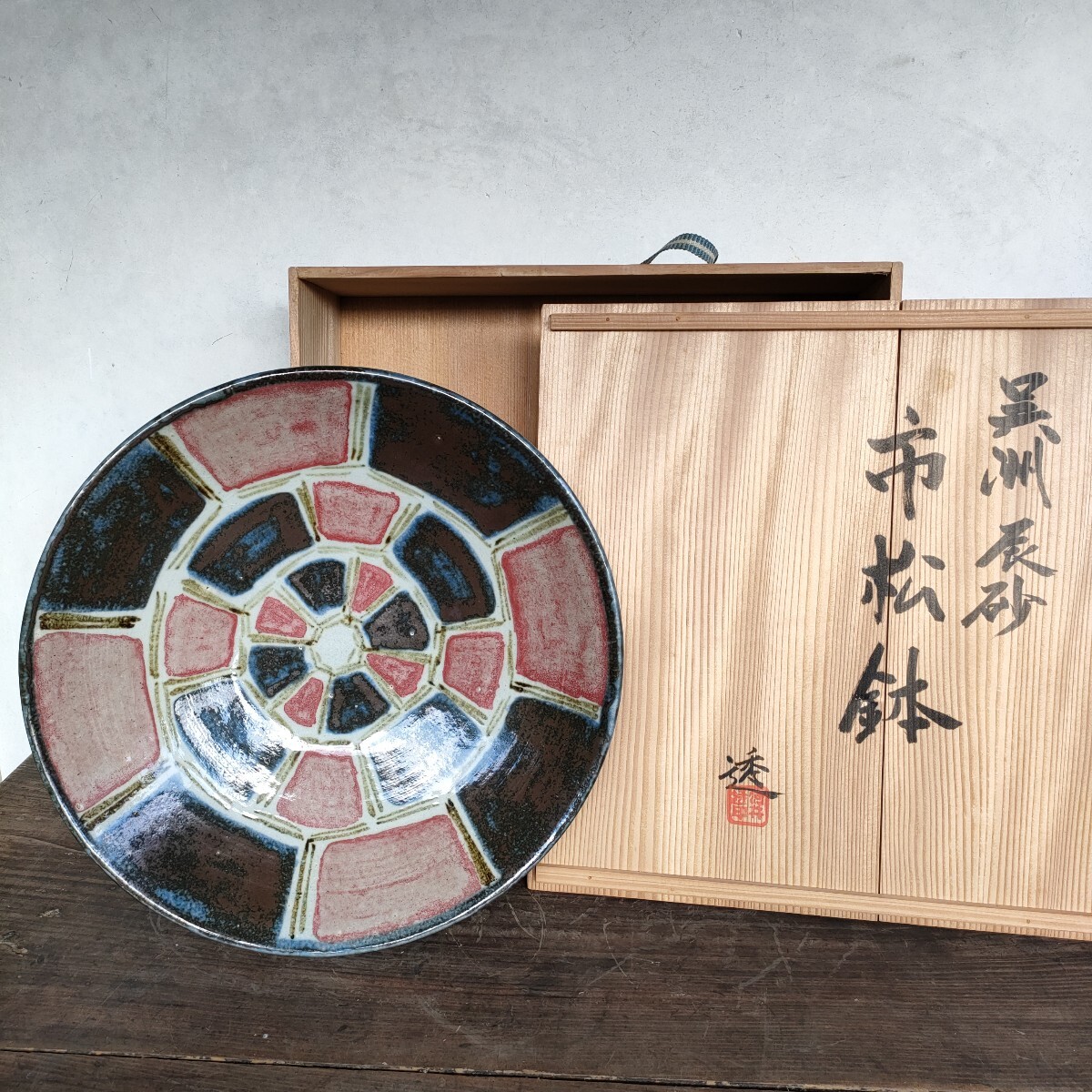 河井透(造) 呉洲辰砂市松鉢 約40.5cm-41cm 共箱あり共箱の蓋に隙間あり 大鉢大皿 師は河井寛次郎 民藝民芸現代工芸美術品