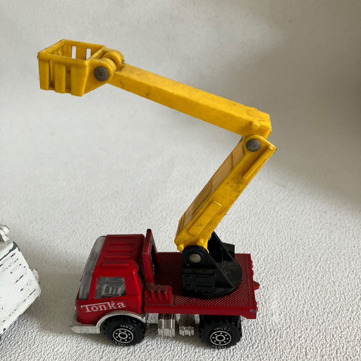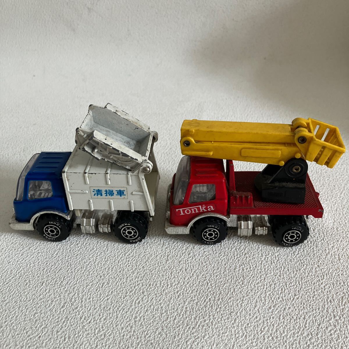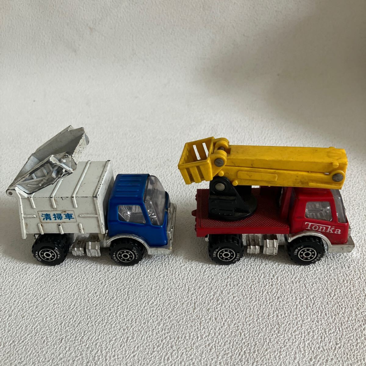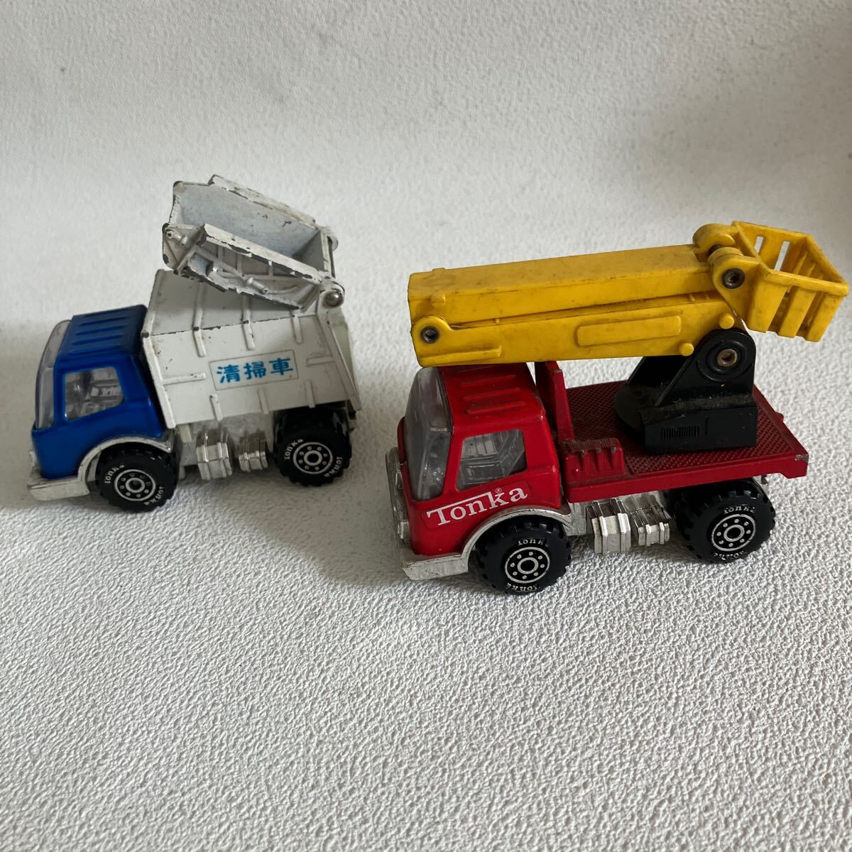 e83-60 ミニカー トンカ Tonka 2台 セット 清掃車 クレーン車 働く車 昭和レトロ 当時物 おもちゃ