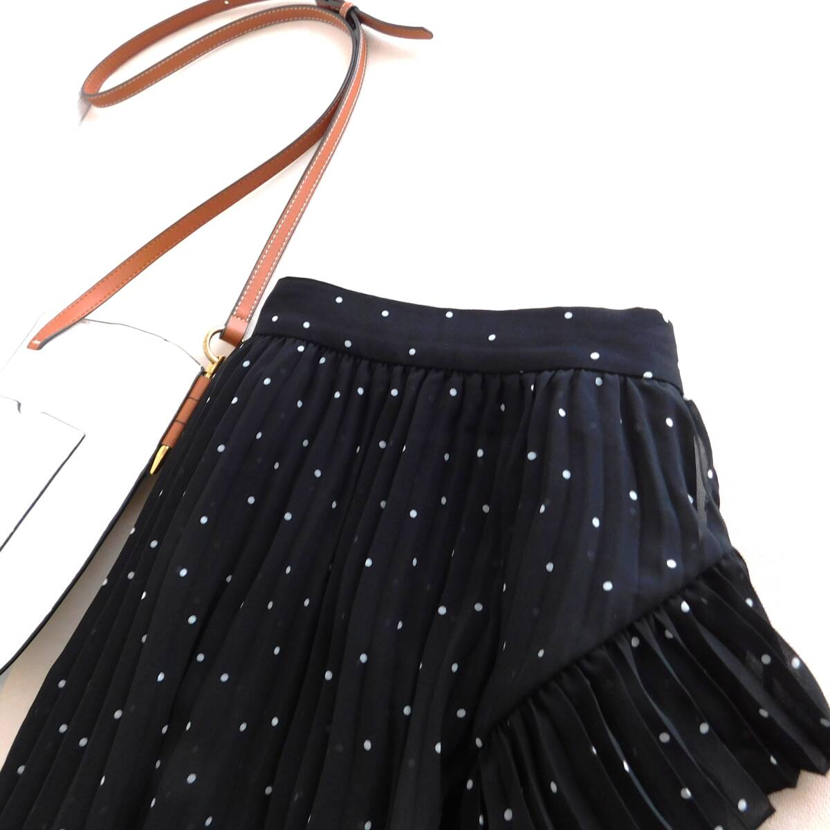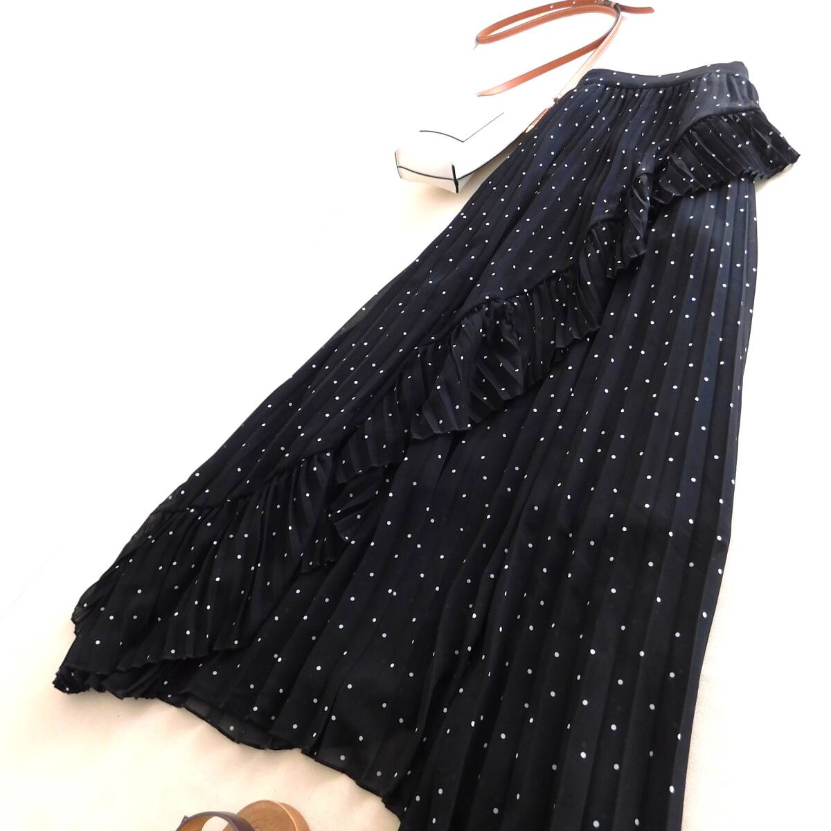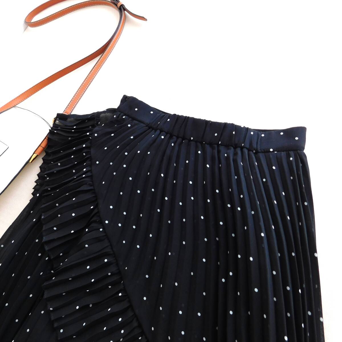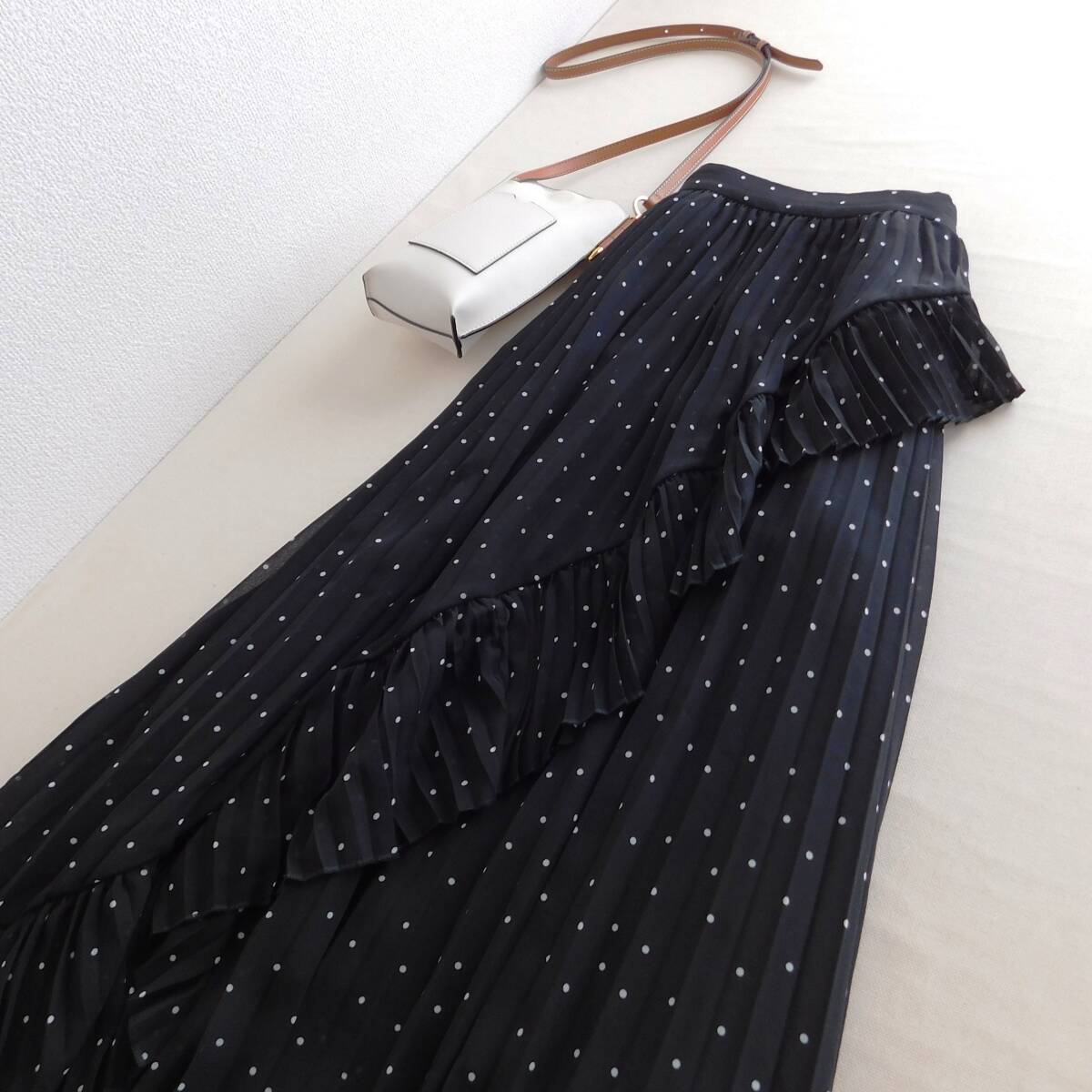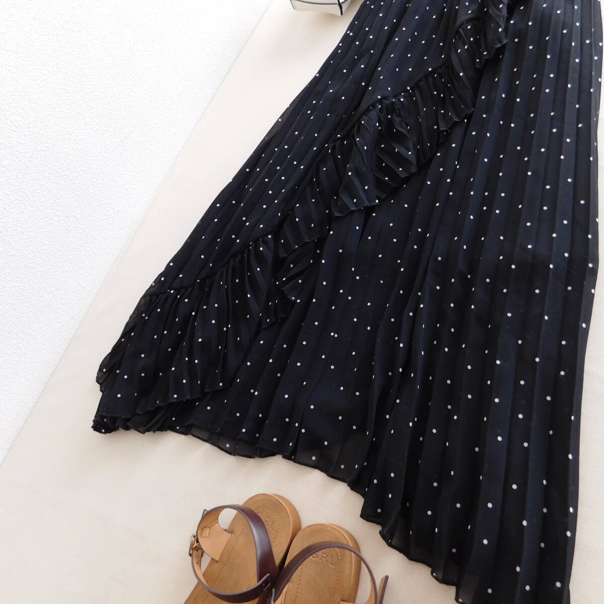 黒のプリーツスカートで、ティアードがかわいいです(#^^#)