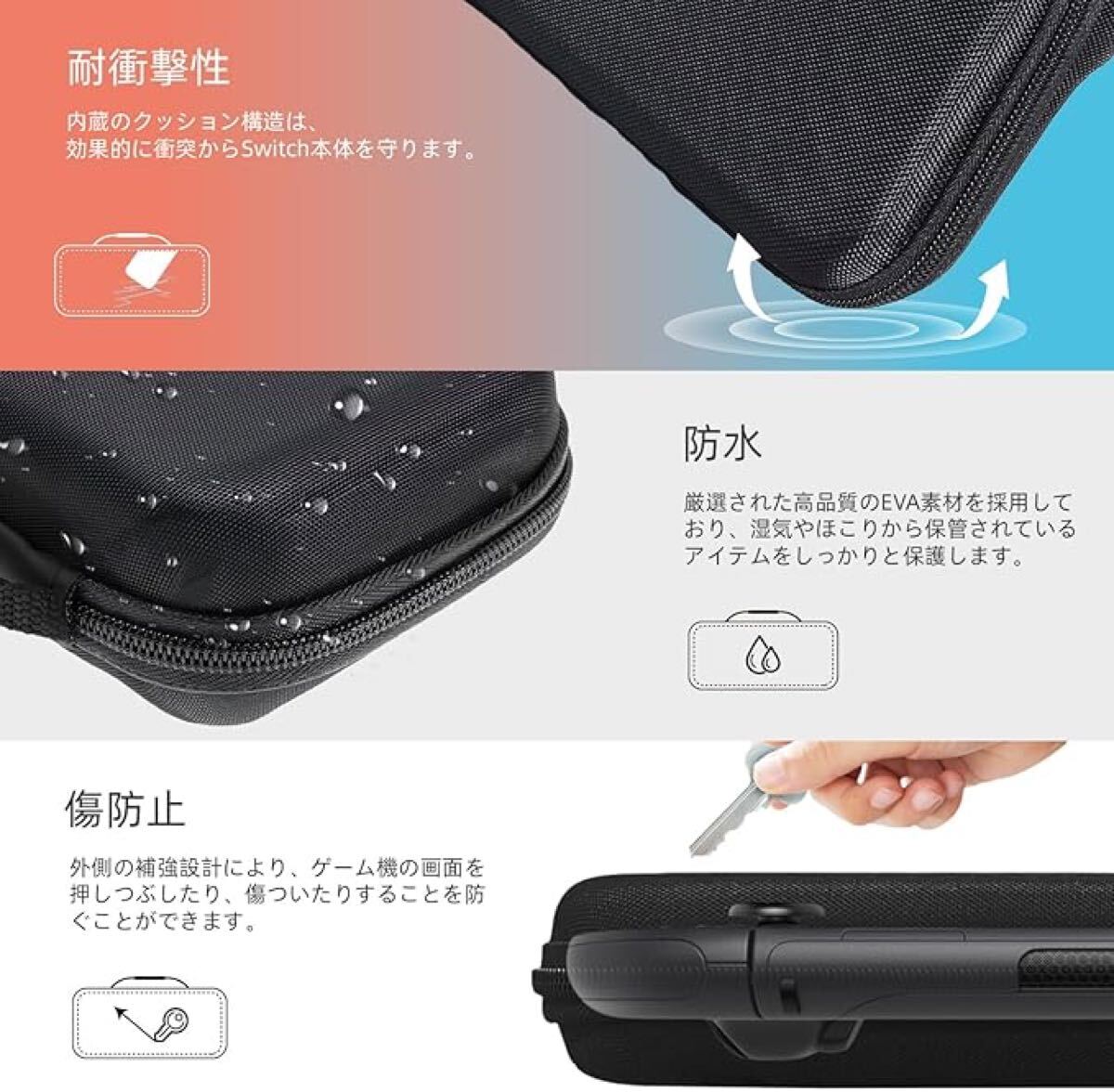 【高密度EVAケース・防水防震】高密度EVA防水素材を採用し、優れた耐圧性と防震性能を提供し、Switch本体を衝突や傷からしっかりと保護します。また、湿気やほこりに抵抗可能で、貴重なアイテムを損傷から守ります。雨天の外出やアウトドア活動でも、信頼できる保護を提供します。