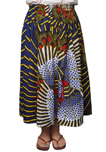 色鮮やかなアフリカンワックスプリントが印象的なフレアスカート。