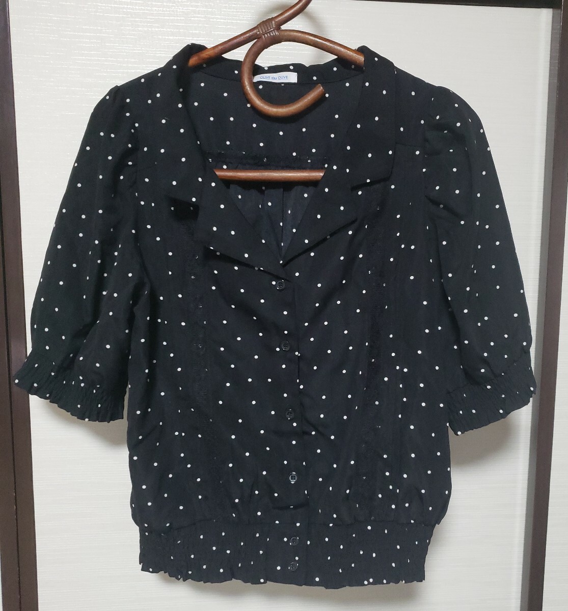 OLIVE des OLIVE オリーブデオリーブ ドット ブラウス シャツ カットソー レース 裾ゴム