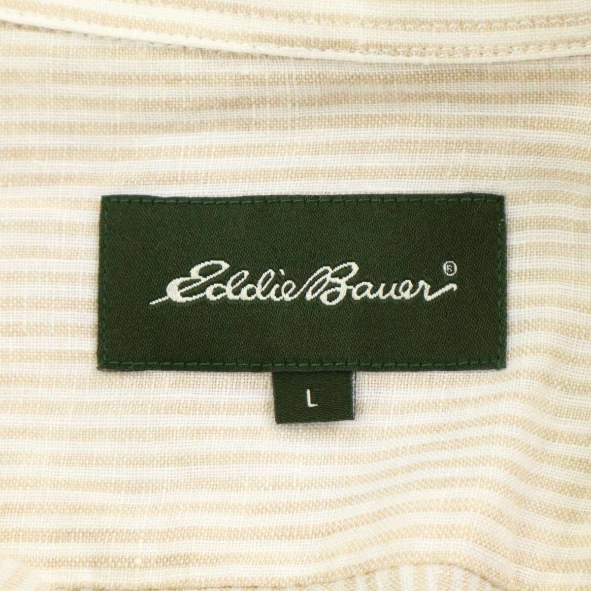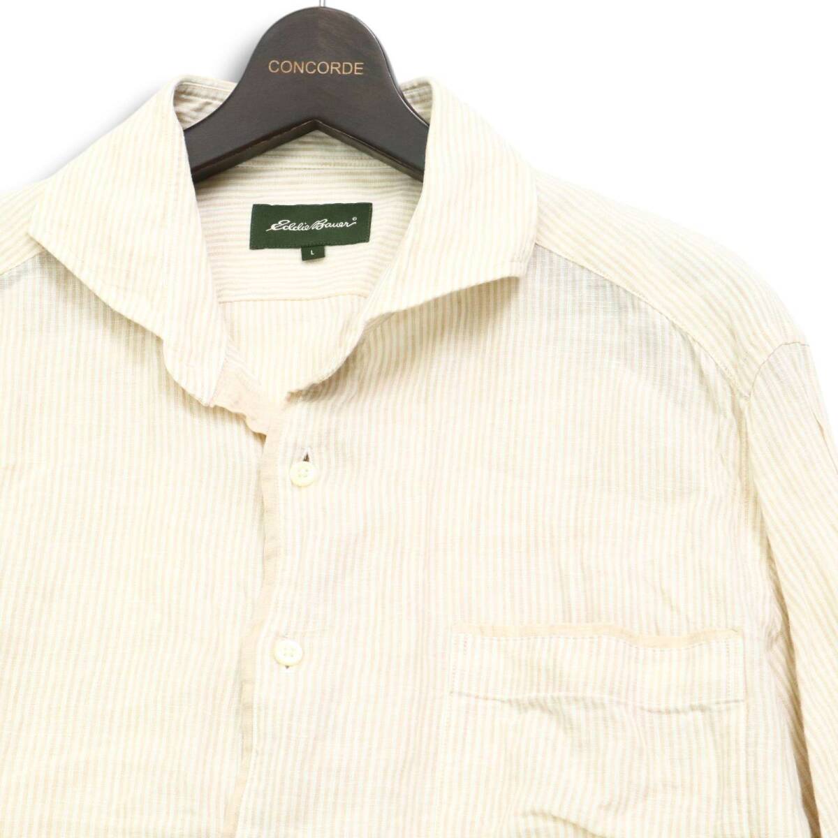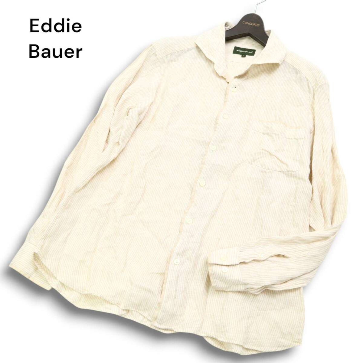 Eddie Bauer エディーバウアー 春夏 麻 リネン100%★ 長袖 ストライプ シャツ Sz.L メンズ アウトドア