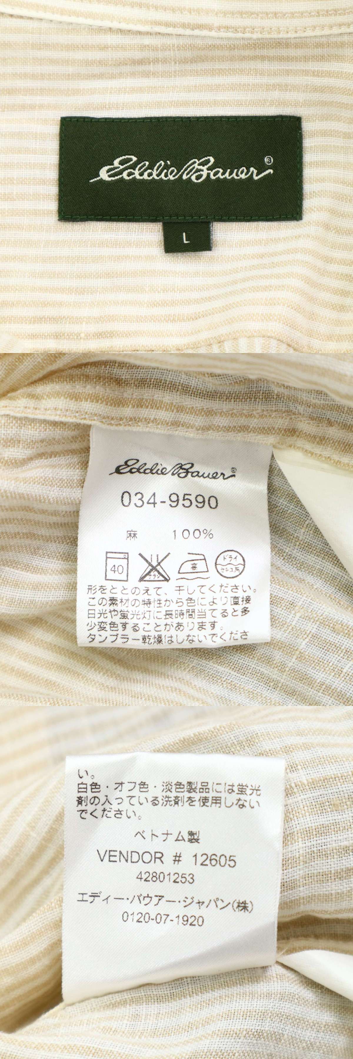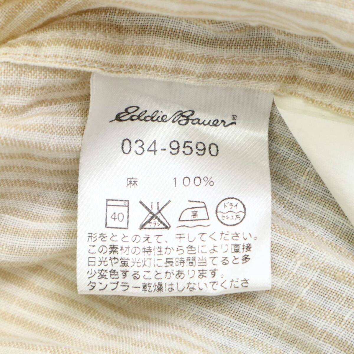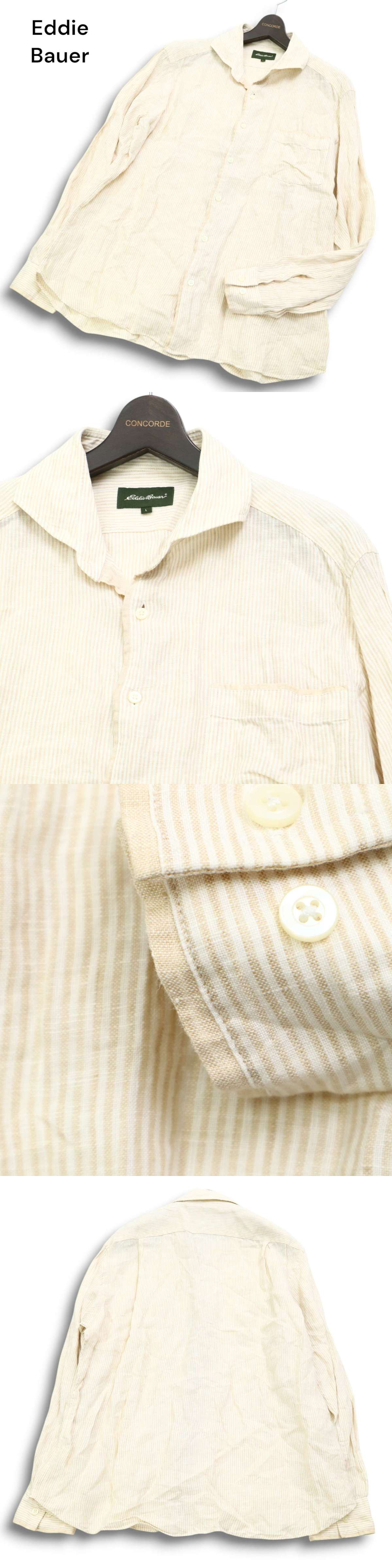 Eddie Bauer エディーバウアー 春夏 麻 リネン100%★ 長袖 ストライプ シャツ Sz.L メンズ アウトドア