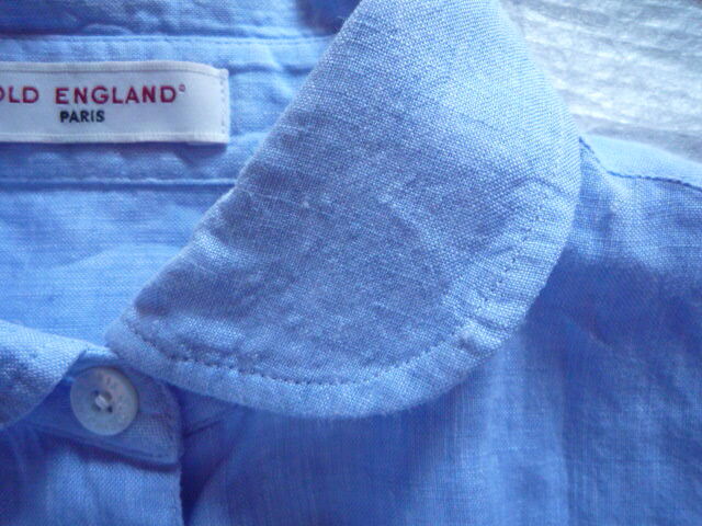 オールドイングランド☆麻100%フレンチ袖ブラウス★ 9号~11号くらい★OLD ENGLAND★水色