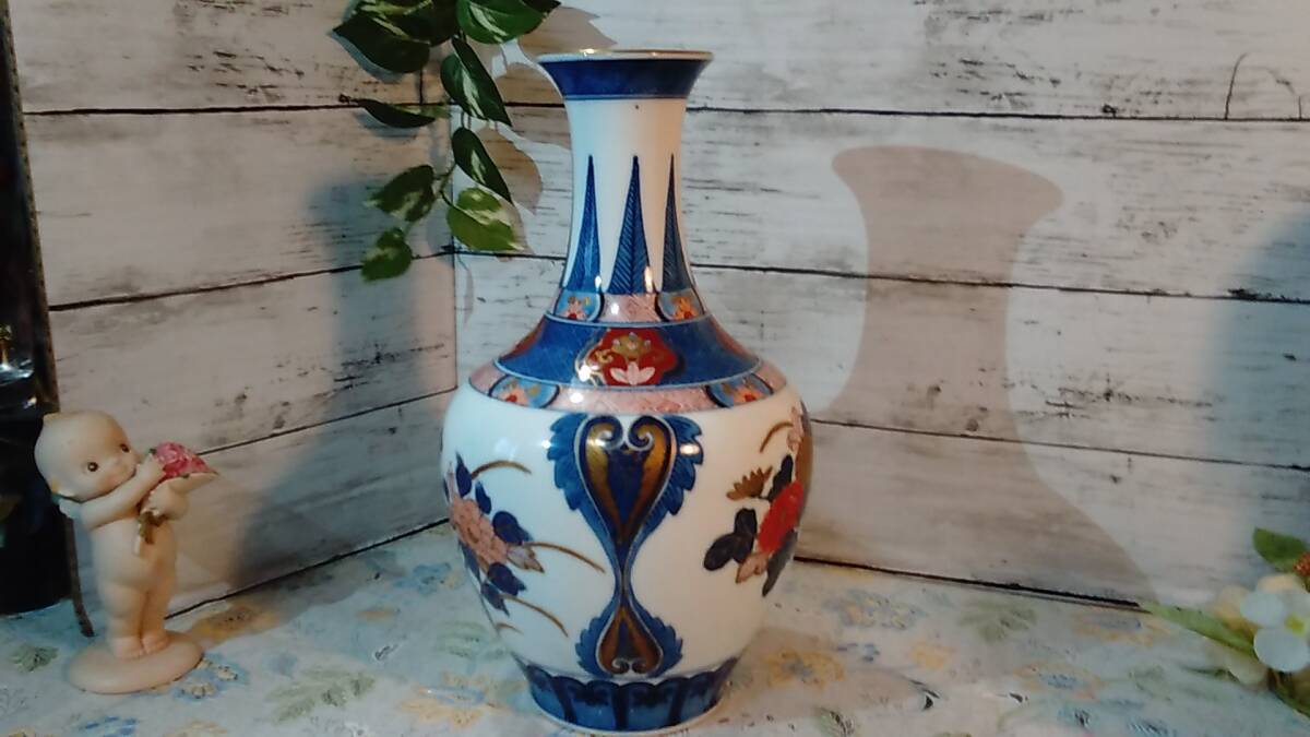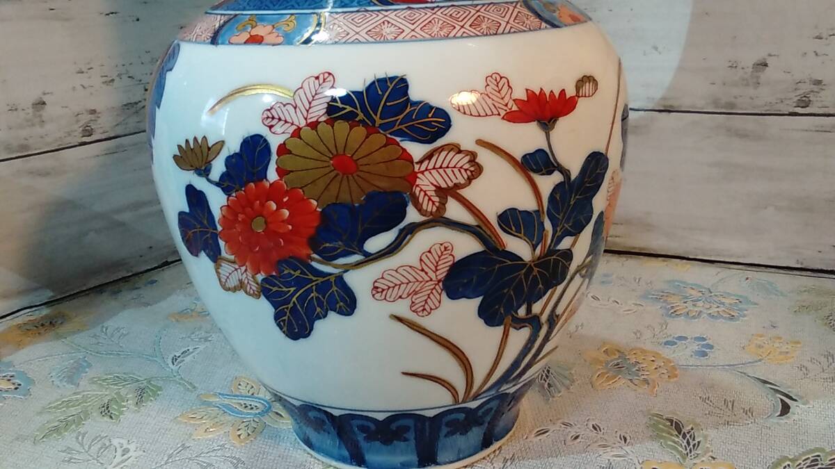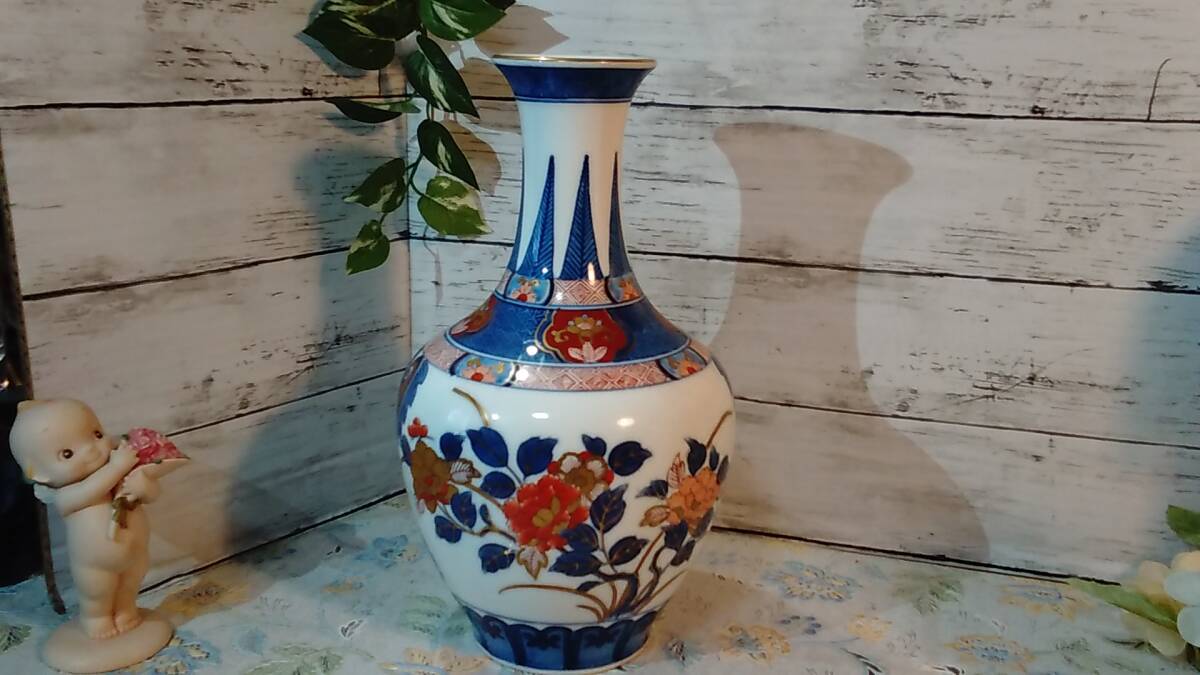 有田焼 古伊万里 松本哲山作 陶印在 染錦牡丹絵元禄図 花器 花入 花生 華道具 茶道具 経年保管品