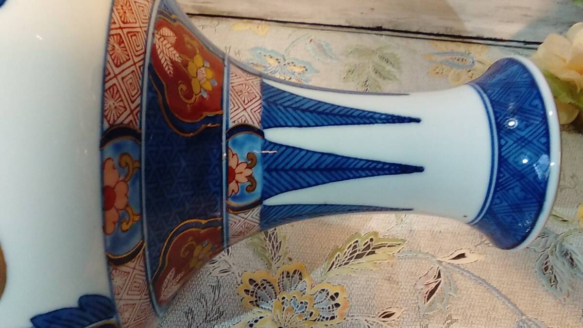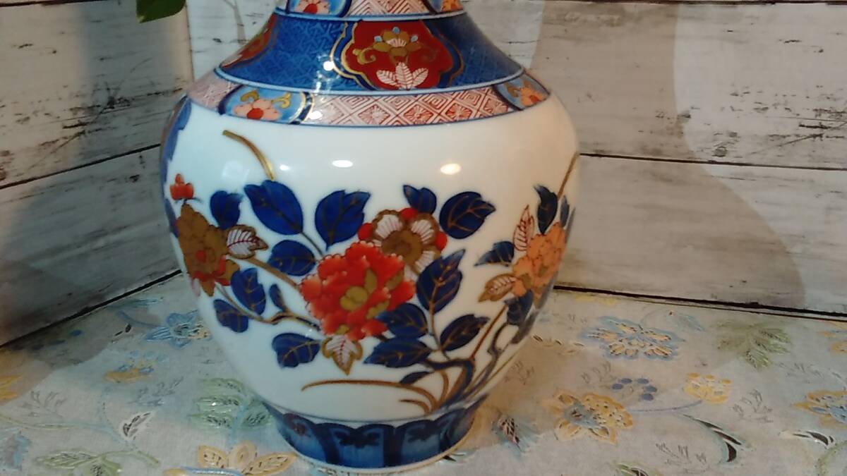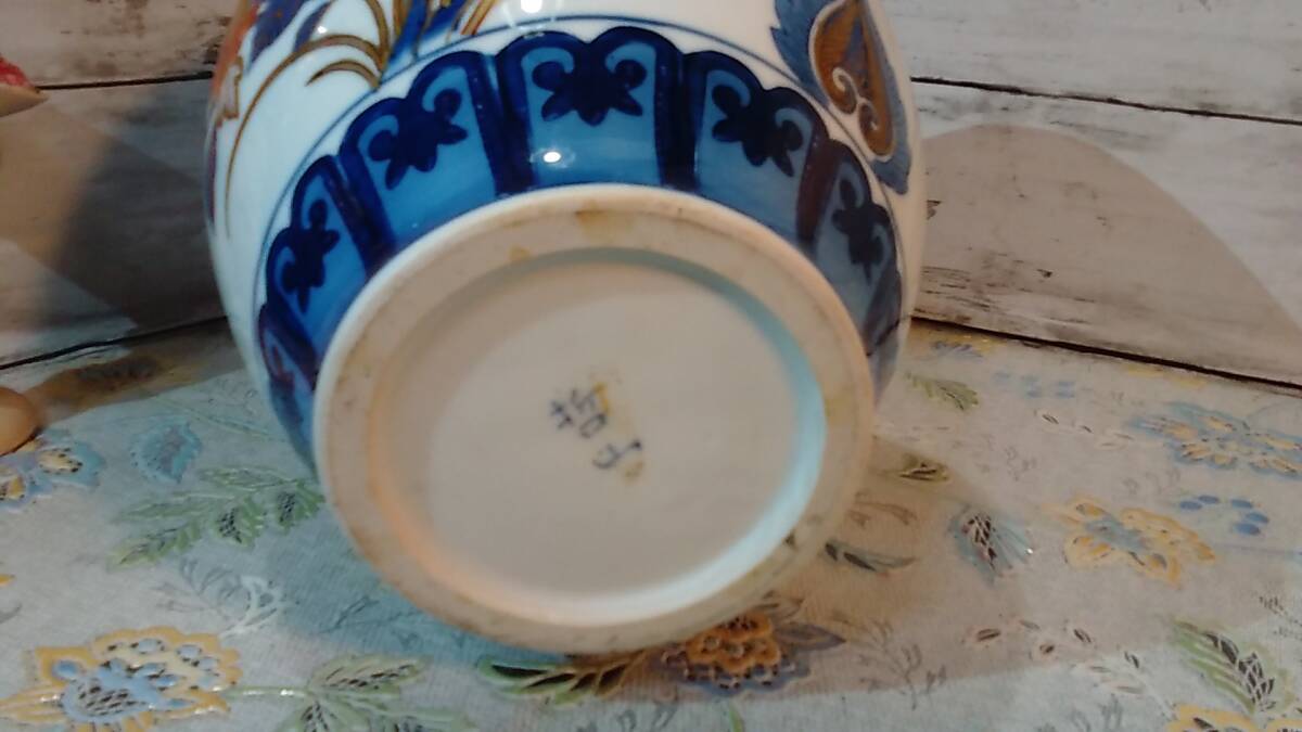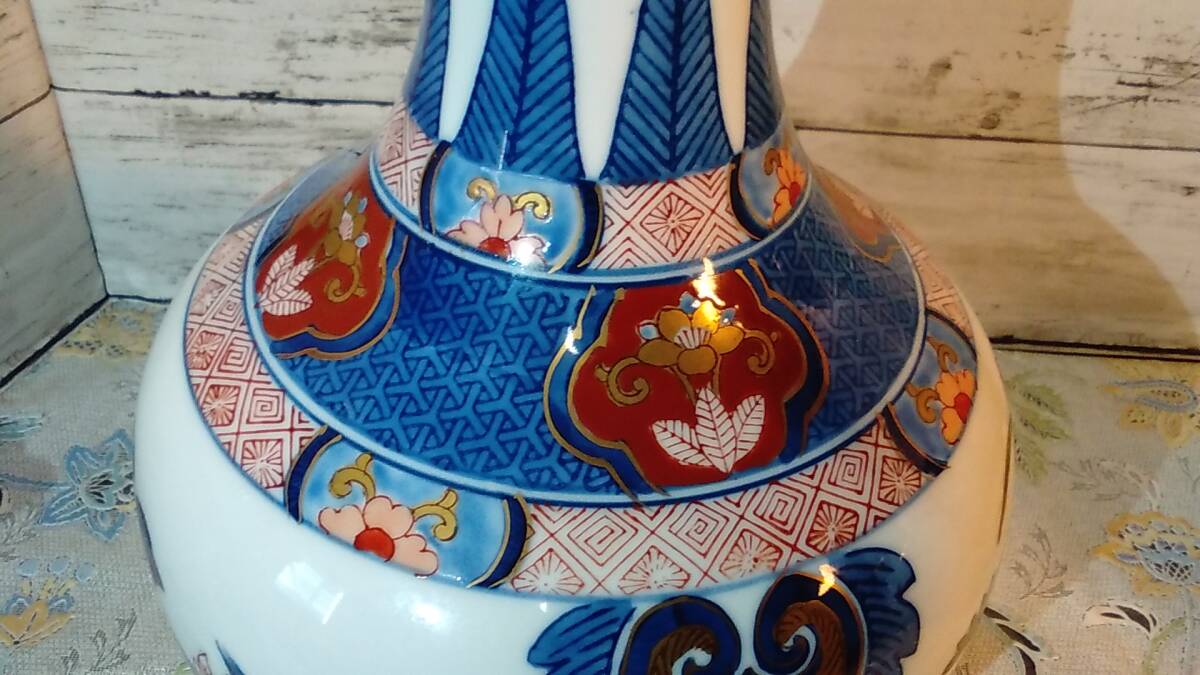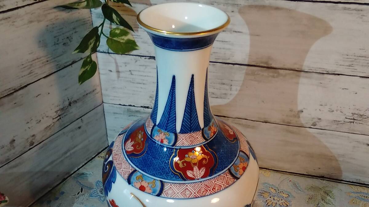 ■■ 有田焼 古伊万里 松本哲山作 陶印在 染錦牡丹絵元禄図 花器 花入 花生 華道具 茶道具 経年保管品  未使用品 ■■