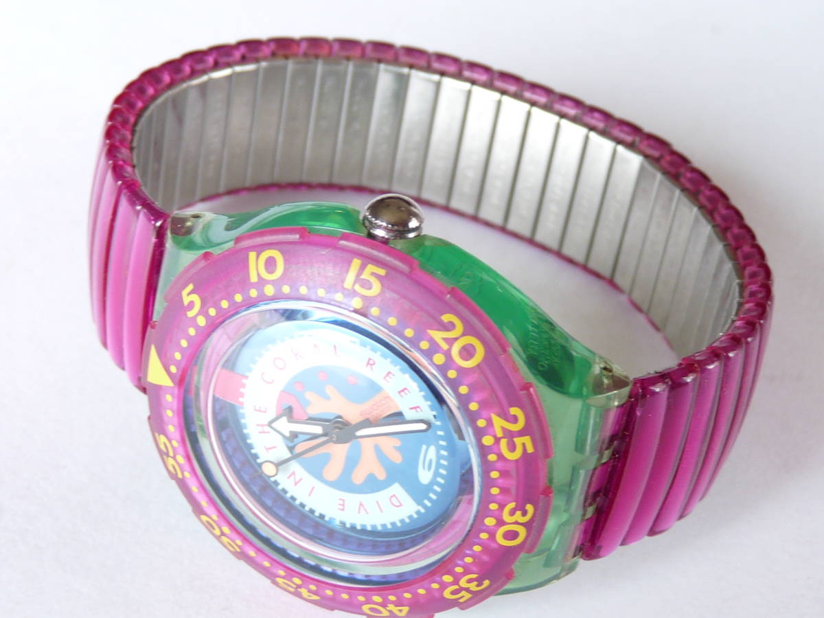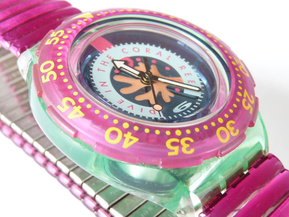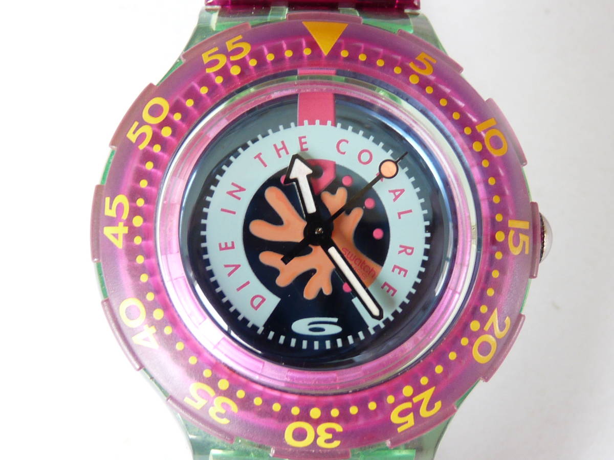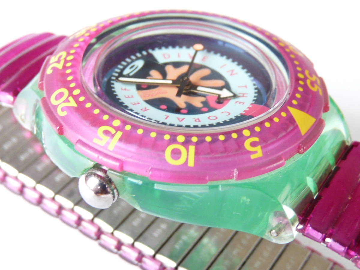 未使用電池交換済 美品 スウォッチ Swatch スクーバ 1994年モデル CHERRY DROPS SDG 品番SDG102 蛇腹ベルト ラージサイズ