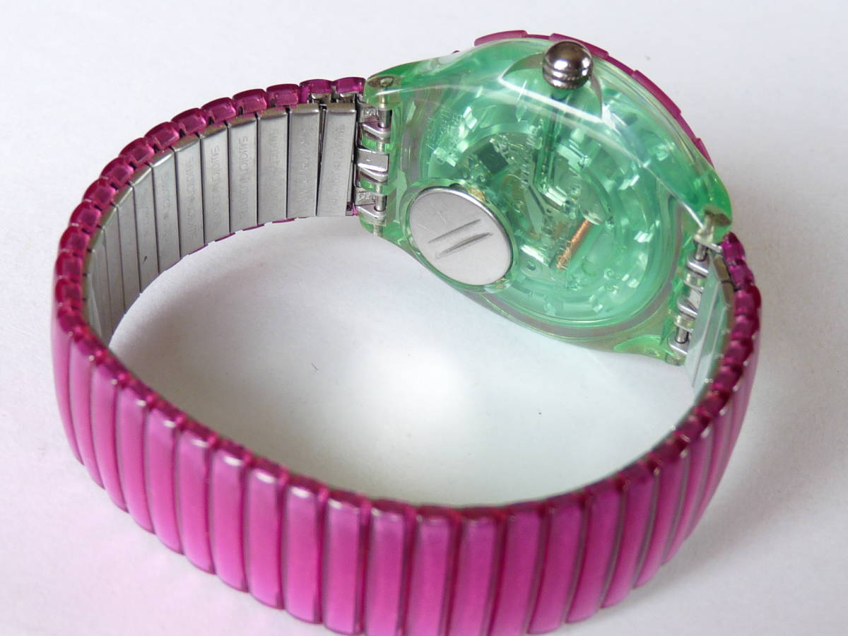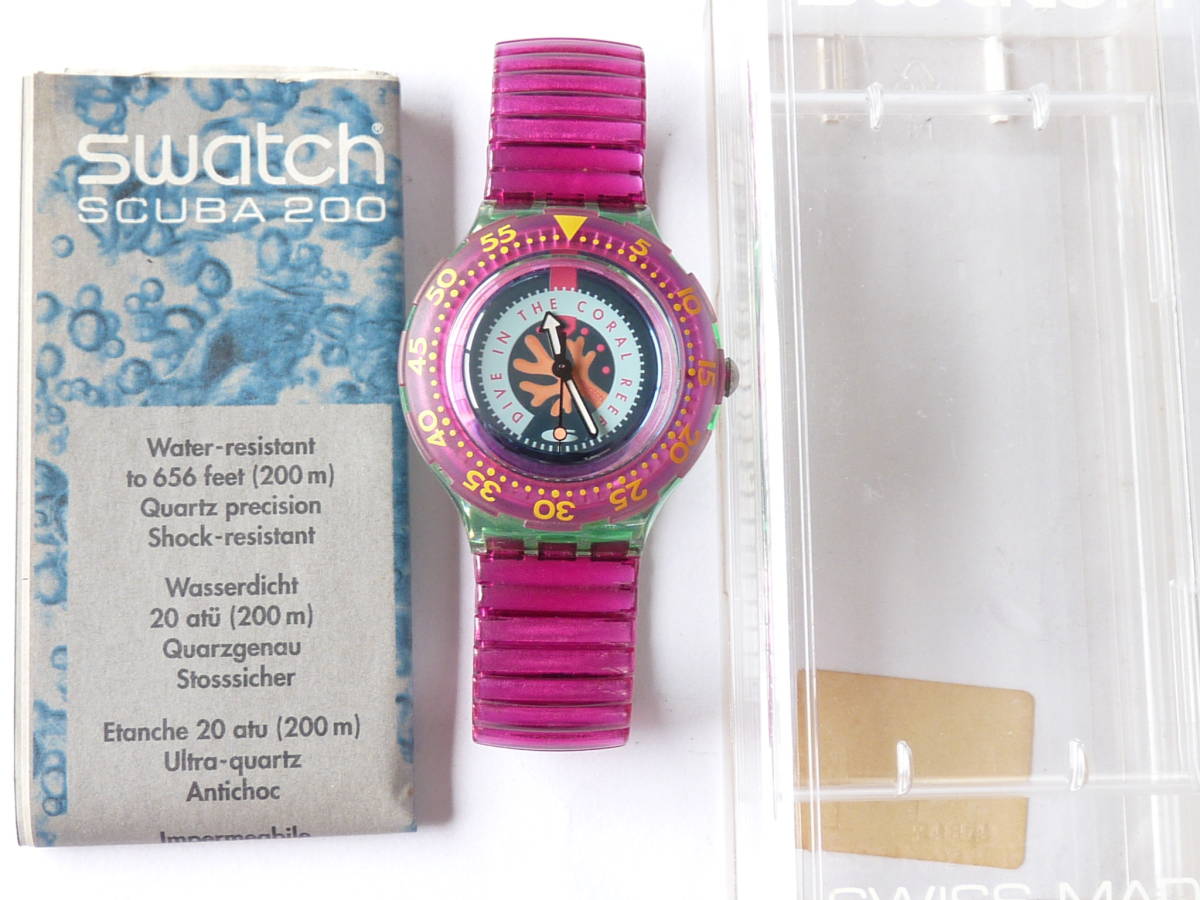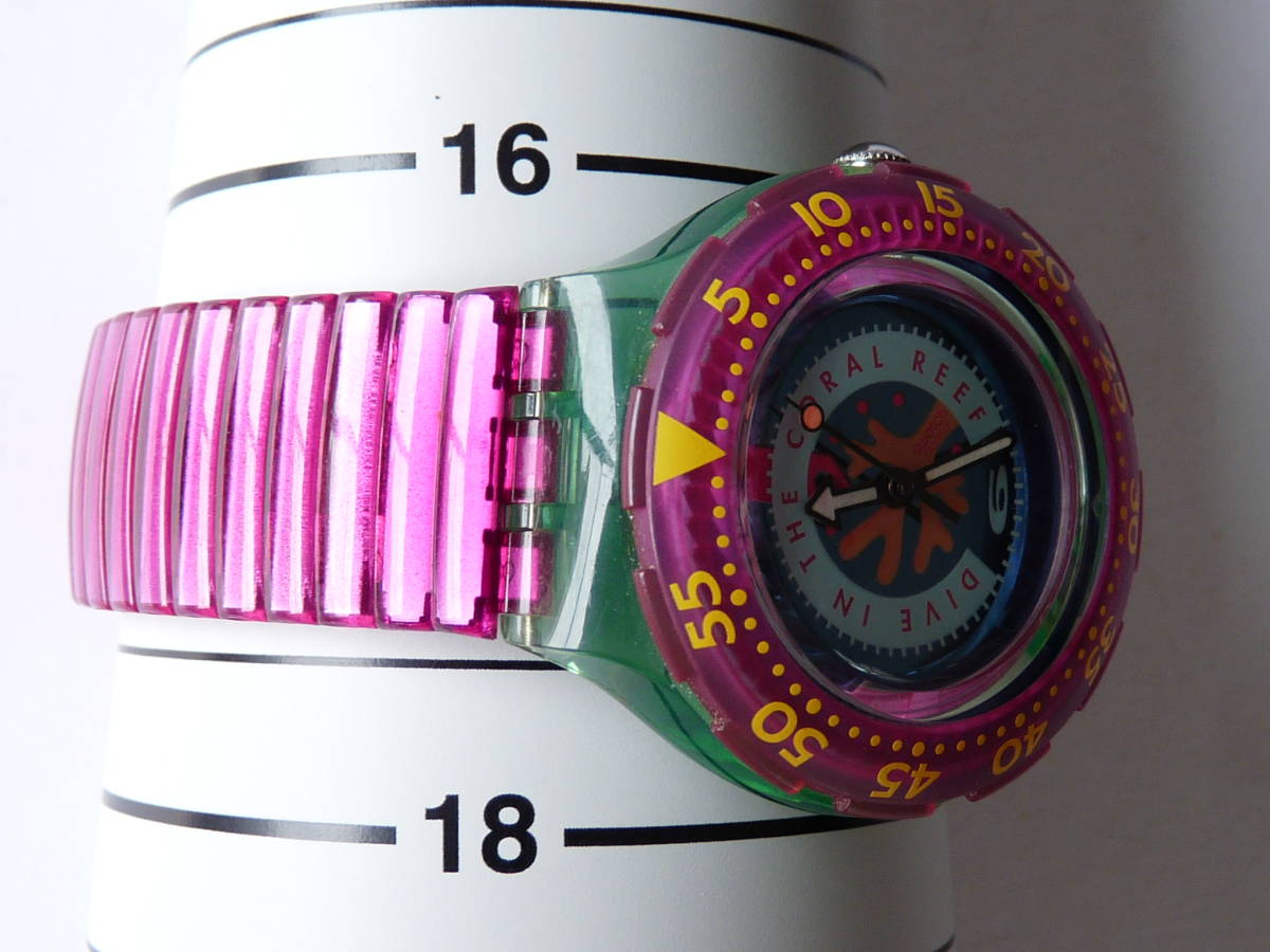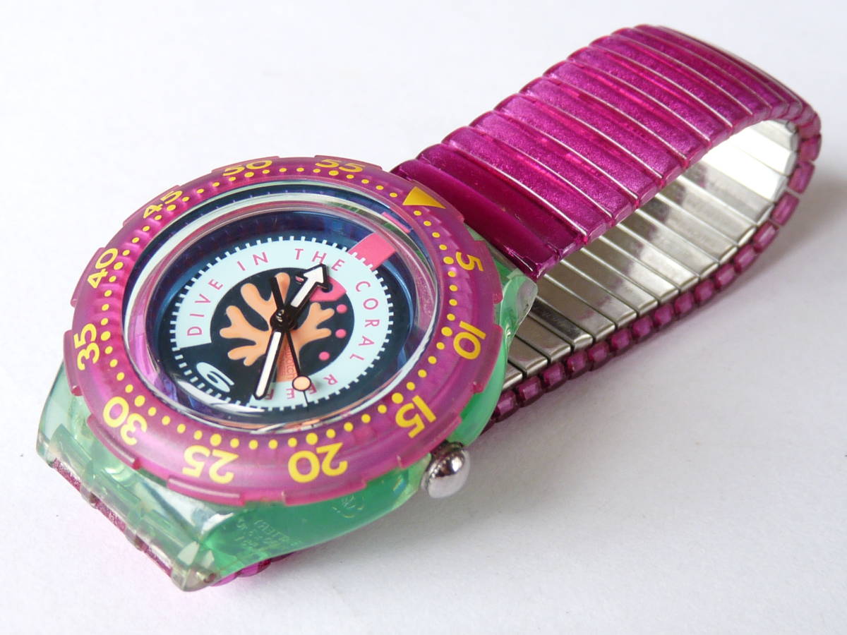 未使用電池交換済 美品 スウォッチ Swatch スクーバ 1994年モデル CHERRY DROPS SDG 品番SDG102 蛇腹ベルト ラージサイズ