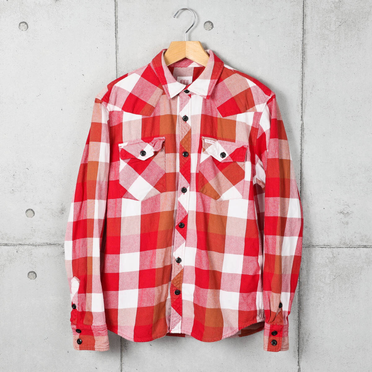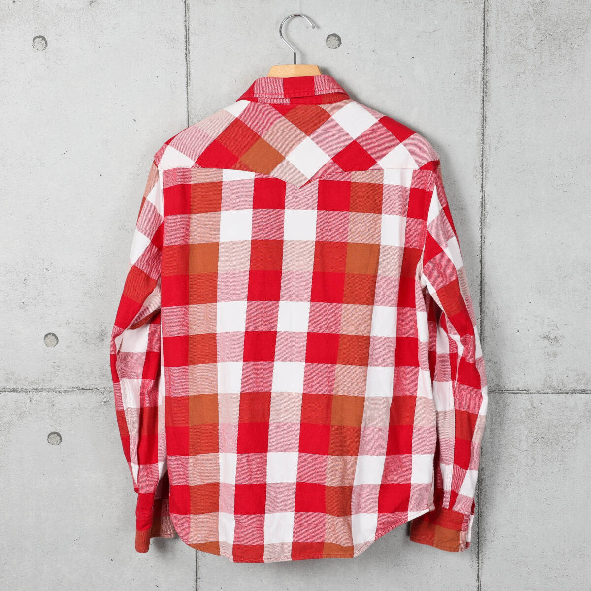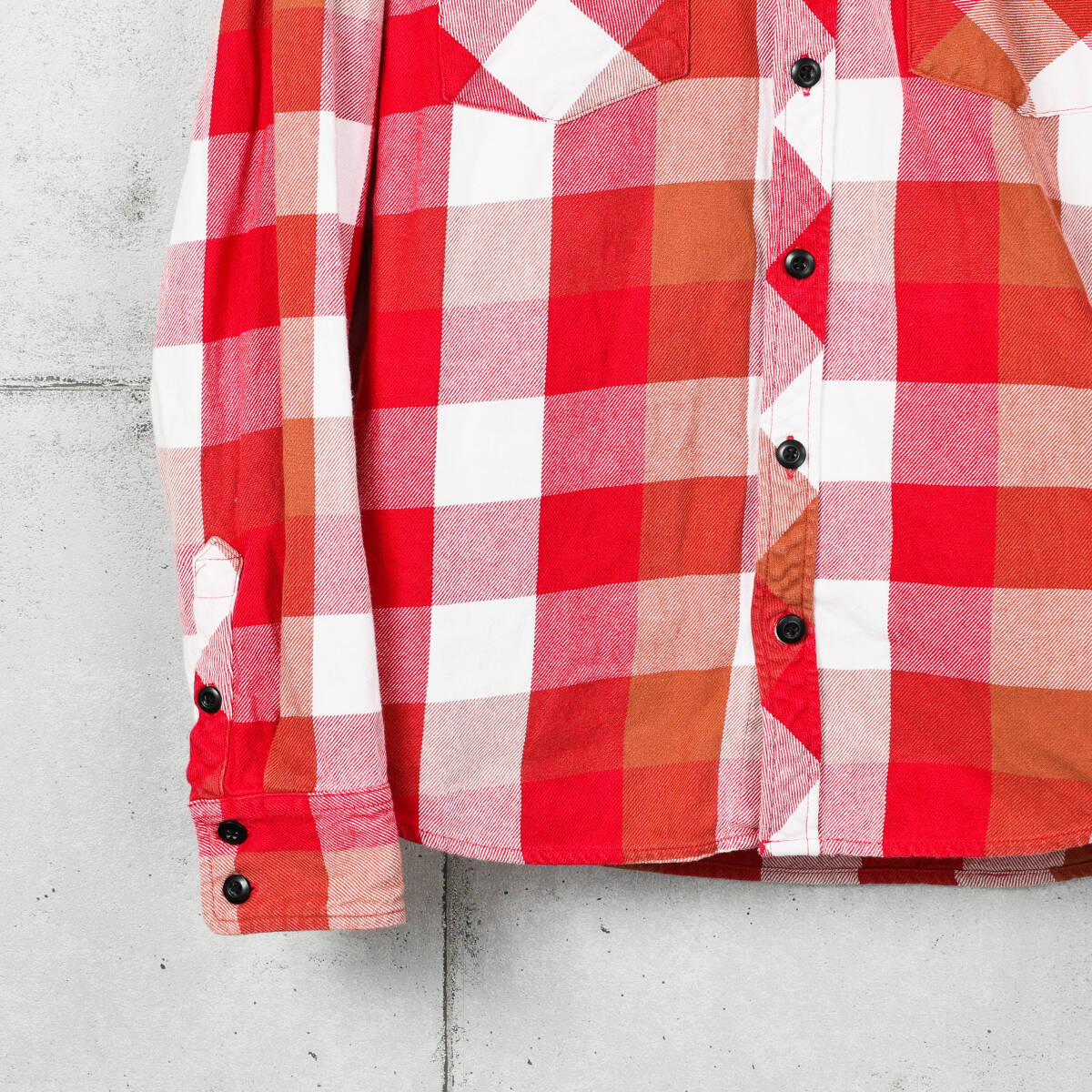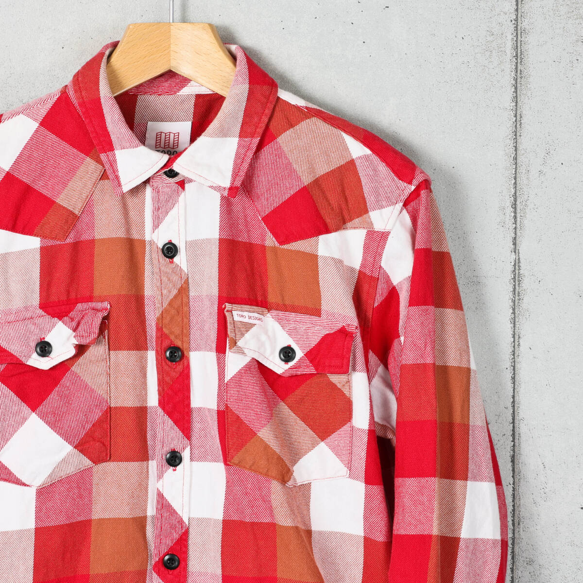 【ブランド】 TOPO DESIGNS / トポデザイン 【アイテム】 フランネル素材 ワークシャツ 【商品説明】 アメリカで購入しました、TOPO DESIGNSのフランネル素材が使用されたチェック柄のワークシャツになります。 【カラー】 レッド×ホワイト×ブラウン 【コンディション】 使用に伴う色落ちや擦れなどがあります。 【サイズ】 サイズ:L 身幅:54cm 肩幅:47cm 着丈:70cm 袖丈:63cm | |||