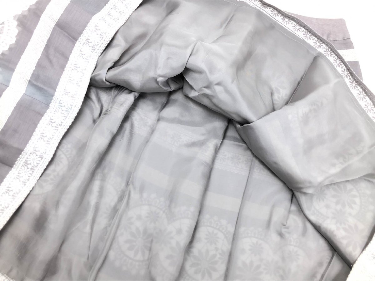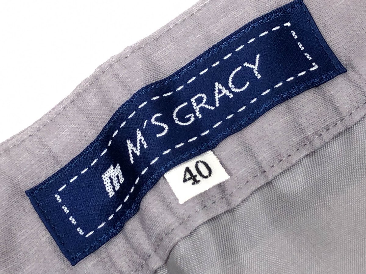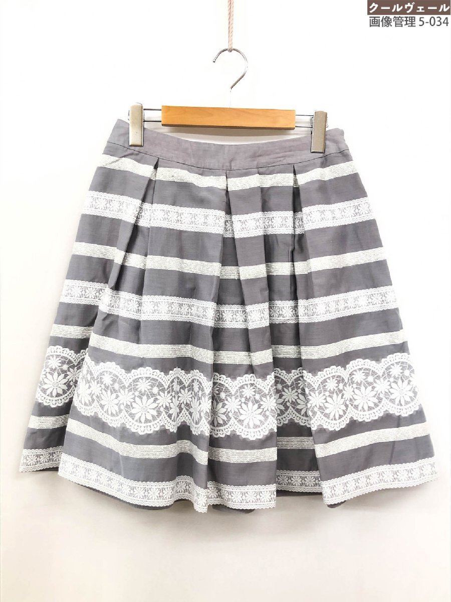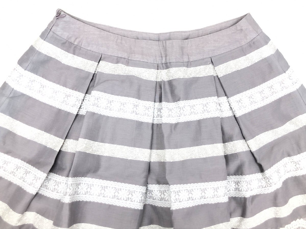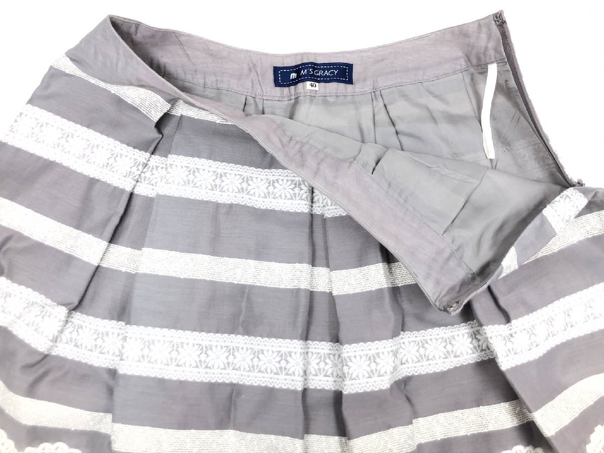 超美品【M'S GRACY エムズグレイシー】IT-527319 刺繍柄 プリーツ 膝丈フレアスカート (レディース) 40 グレー×ホワイト系 ◇35LF3958◇