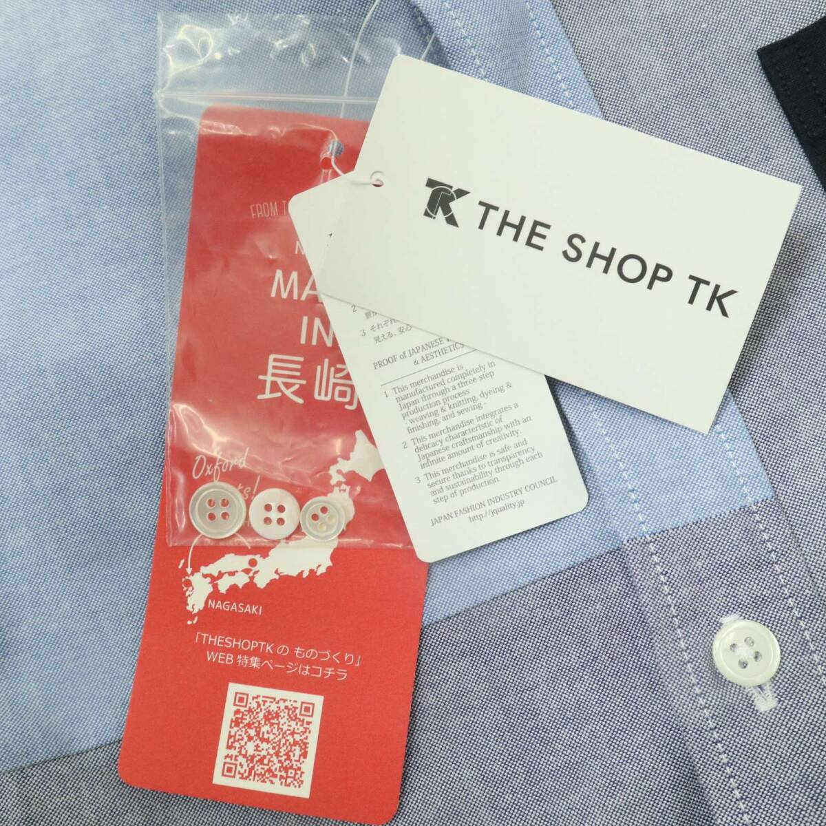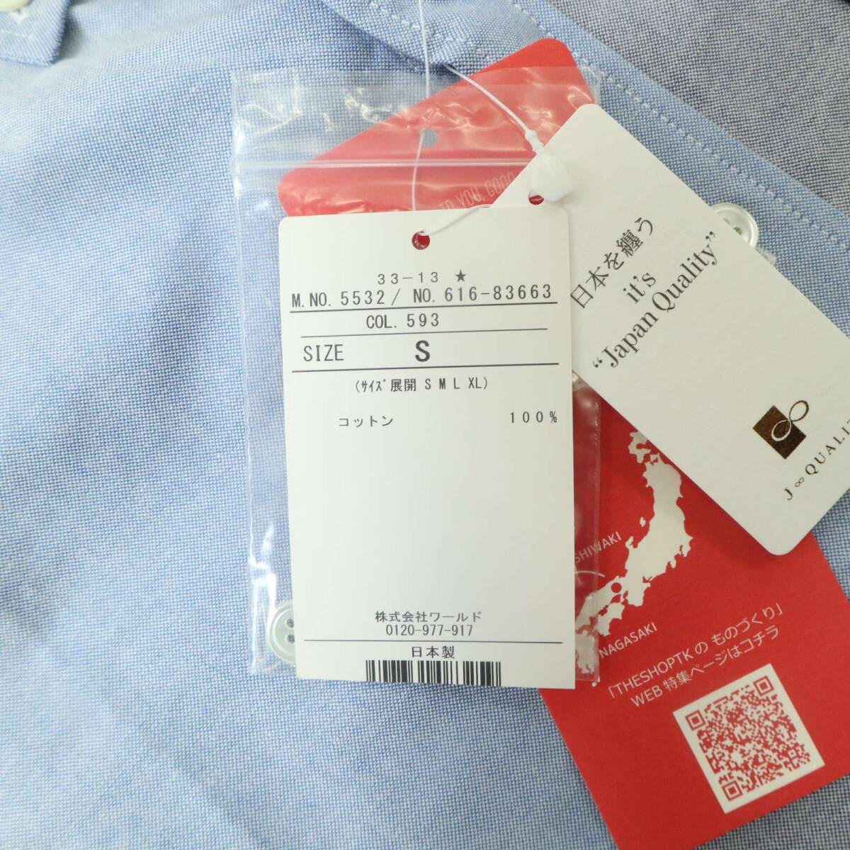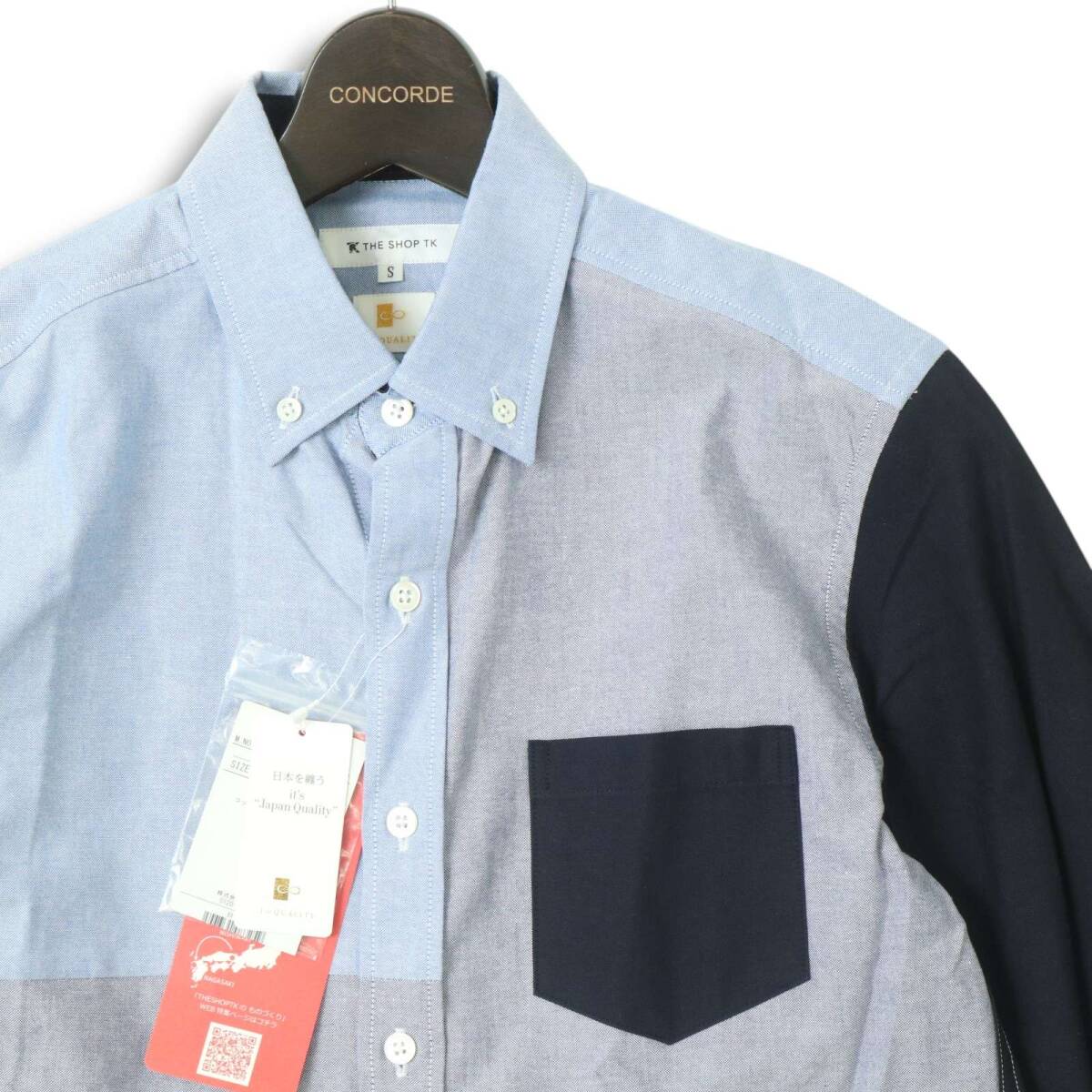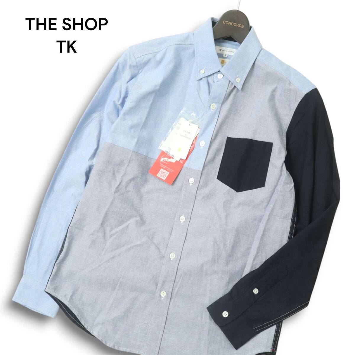 【新品 未使用】 THE SHOP TK タケオキクチ 通年★ カラーブロック 長袖 ボタンダウン シャツ Sz.S メンズ 長崎 日本製