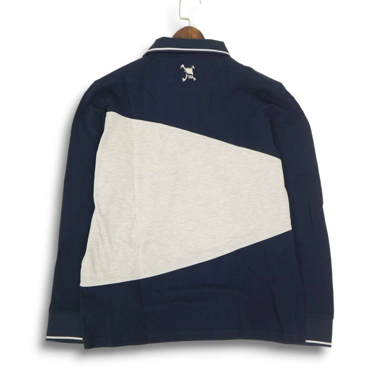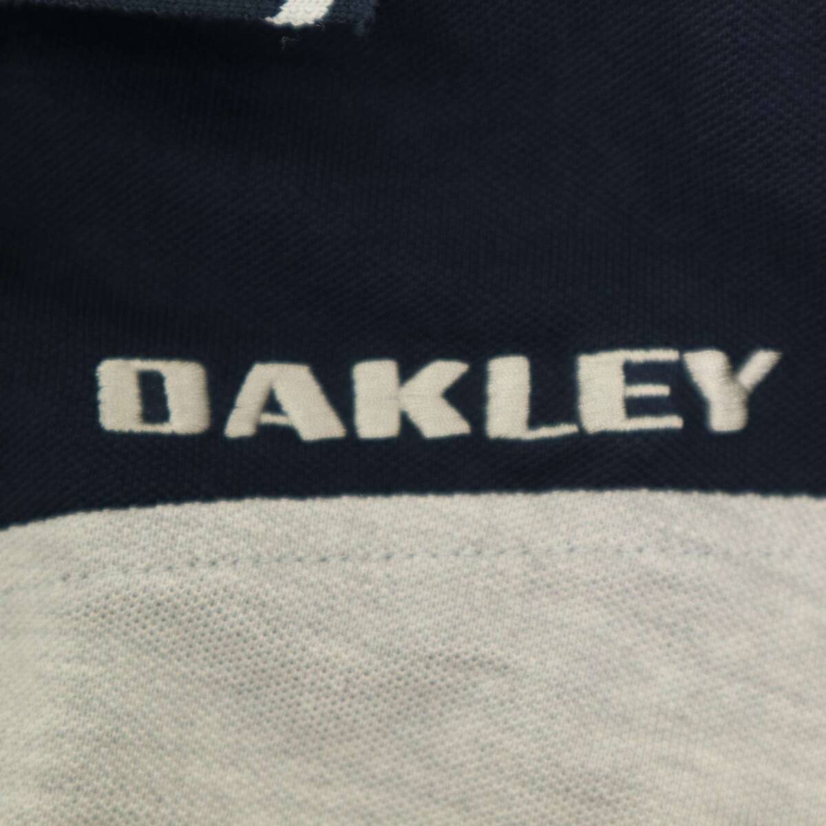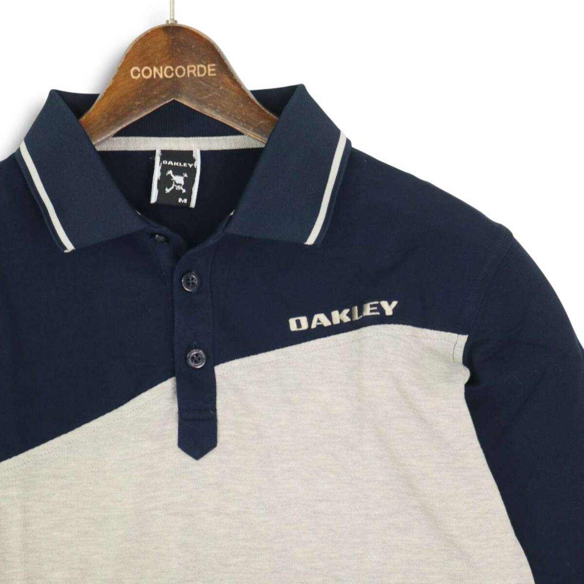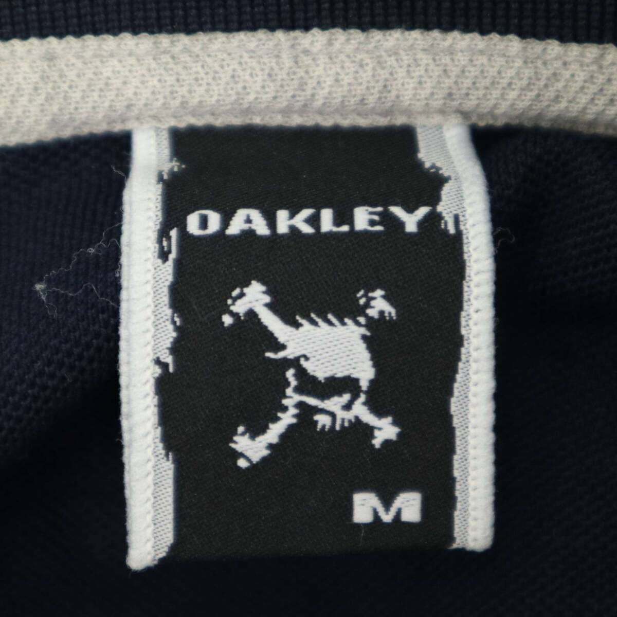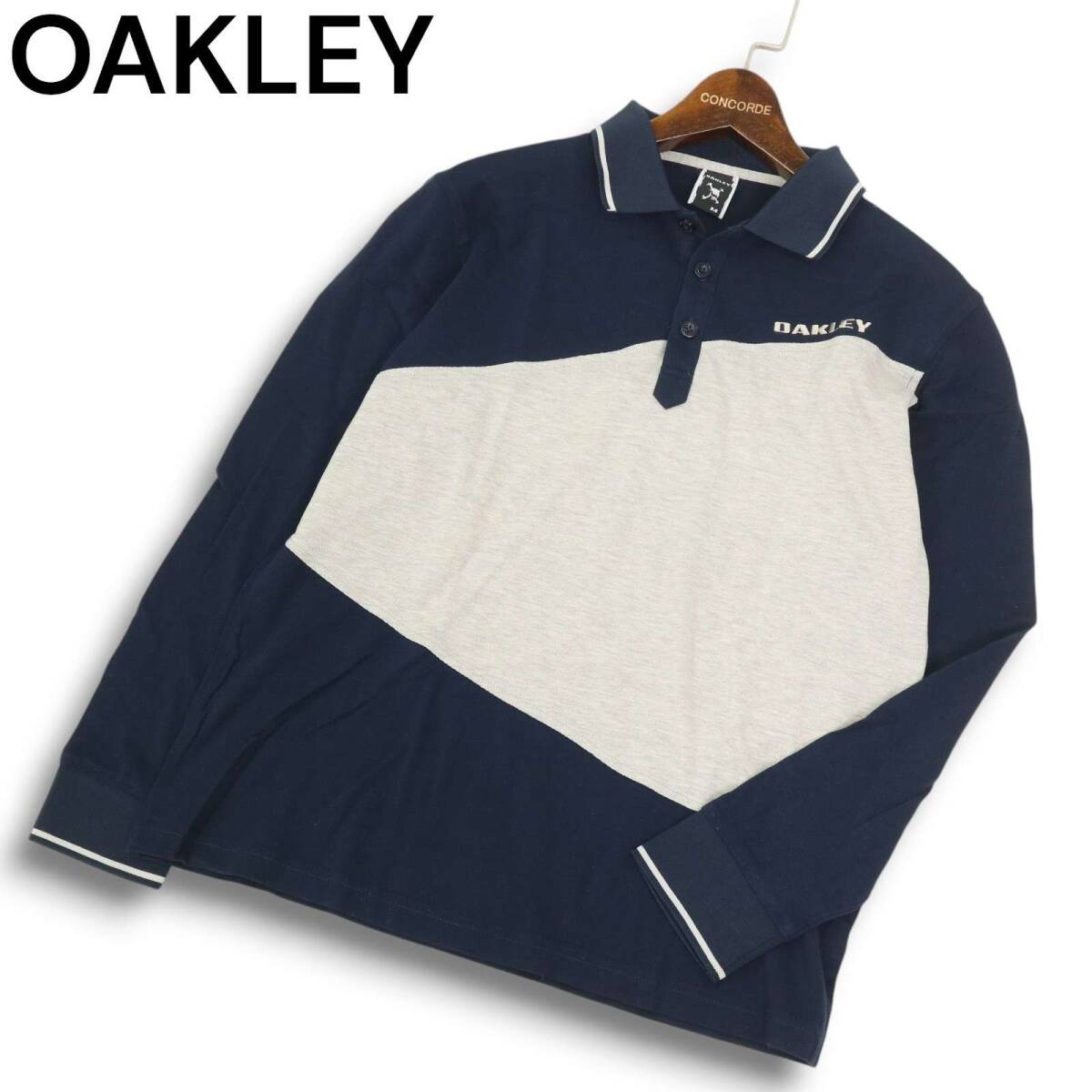 OAKLEY オークリー スカルコレクション 通年 スカル刺繍★ 切替 長袖 鹿の子 ポロシャツ Sz.M メンズ ゴルフ 灰×紺
