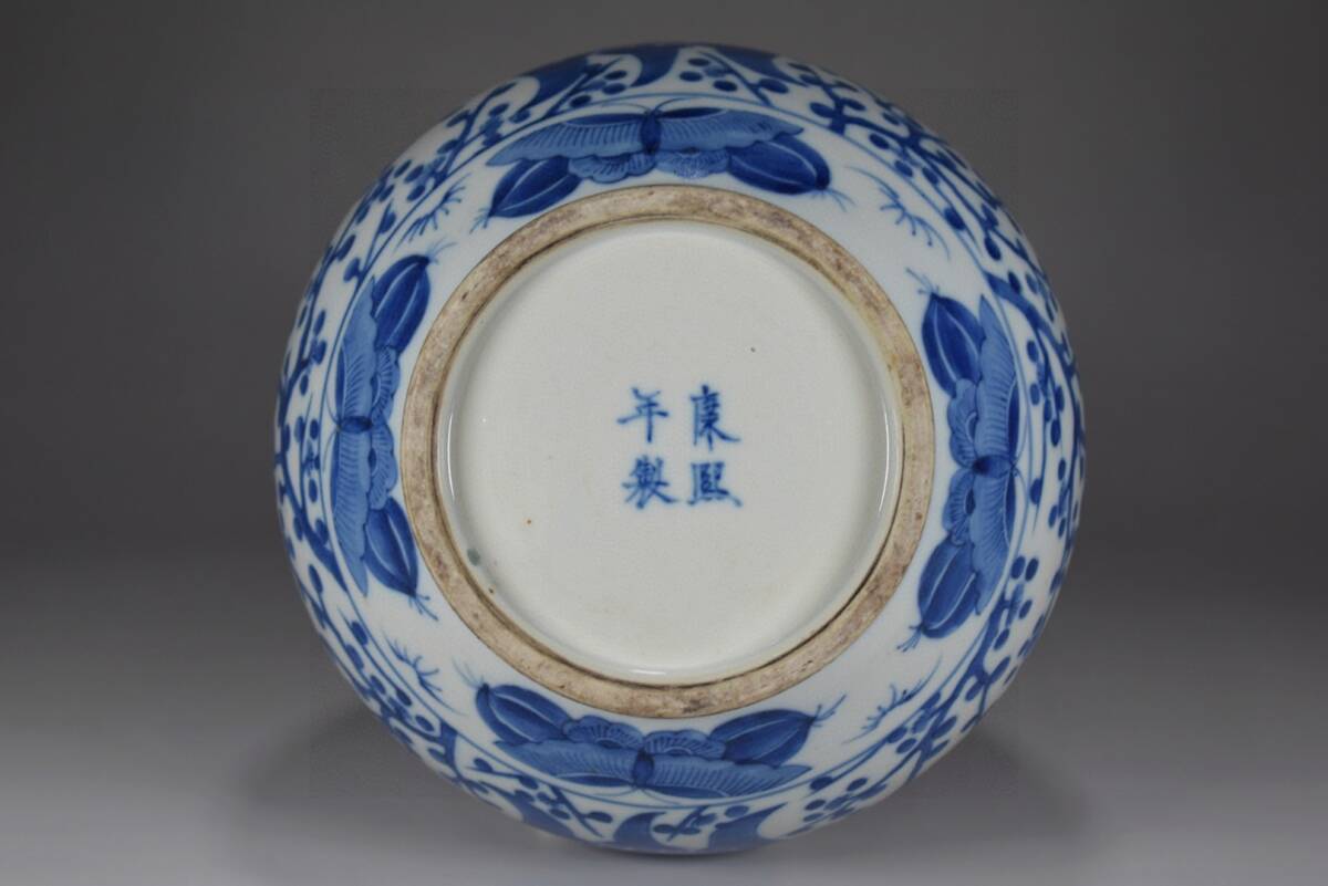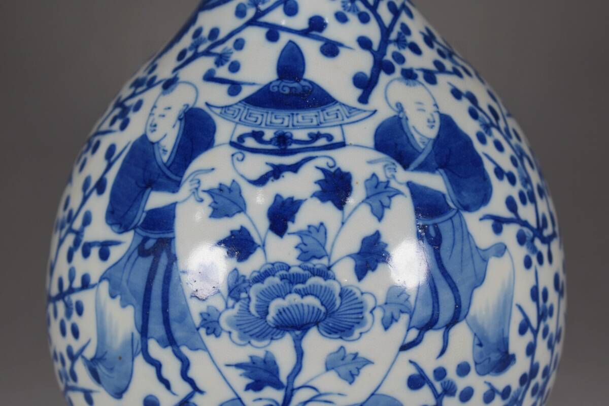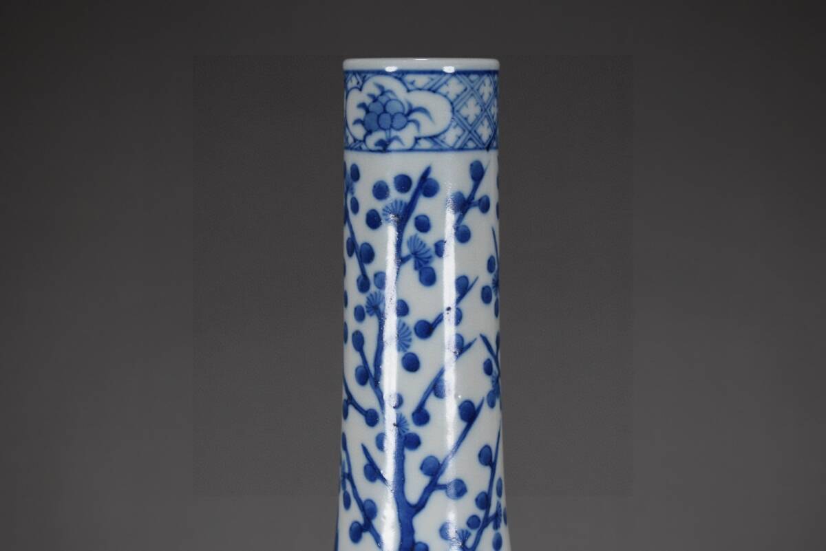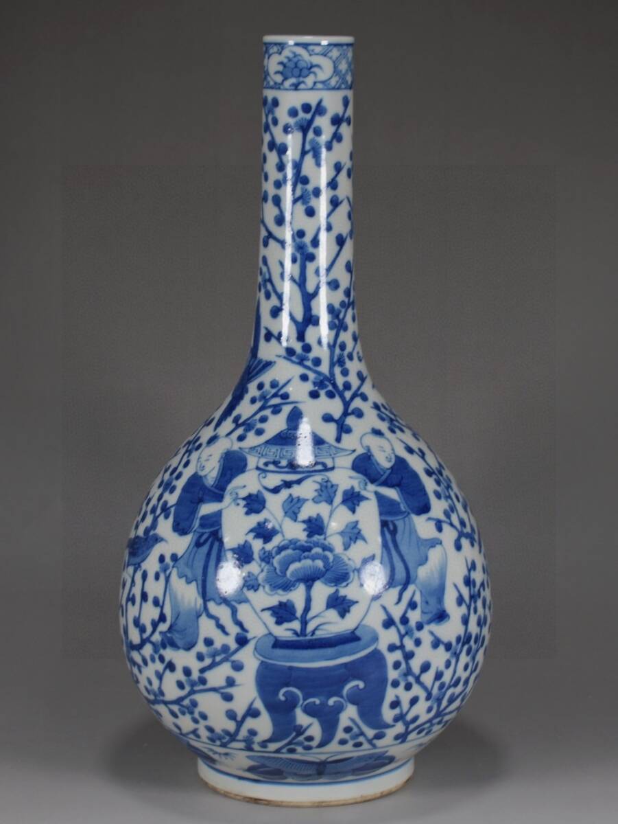 旧蔵 大清 康熙年制 青花 百梅紋 四海升平 長頸瓶 陶芸 磁器 古陶磁器 極細工 中国古玩 骨董品 古美味 207