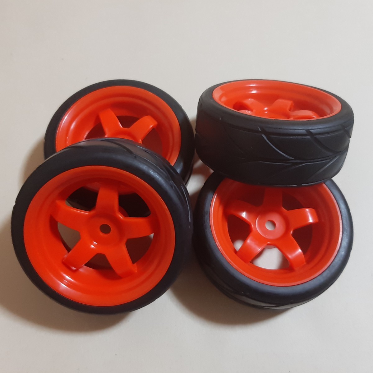 ●即決価格●送料無料●グリップ タイヤ ホイール● 5スポーク 蛍光レッド   TT02 TT01 タミヤ TB03 TA05 TA TB 03 04 05 06 ラジコン