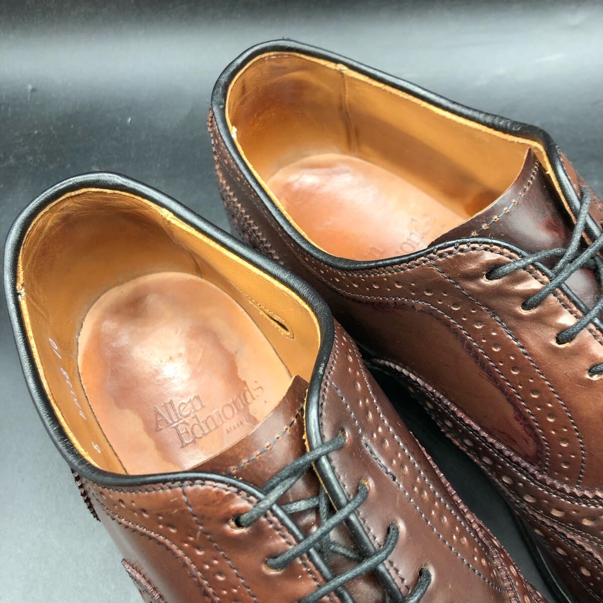 M4401 Allen edmonds アレンエドモンズ Cambridge コードバン ウイングチップ シューズ 7 E 25.0cm 相当 ブラウン 茶 USA製 ビジネス