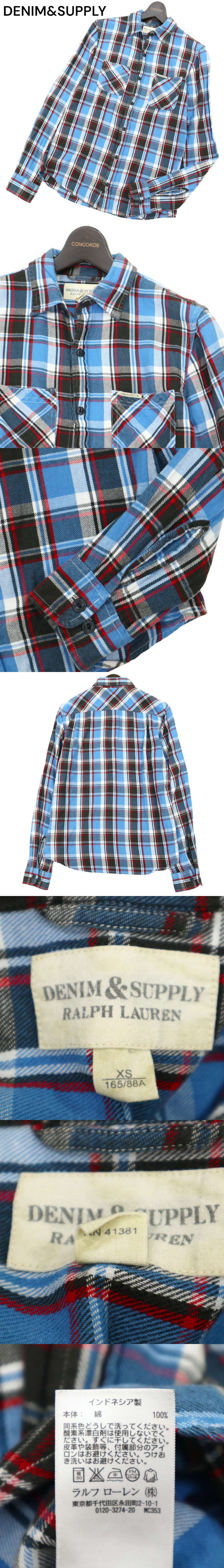 DENIM&SUPPLY ラルフローレン 通年 ロゴタグ★ 長袖 ワーク チェック ネル シャツ Sz.XS メンズ 水色 青系