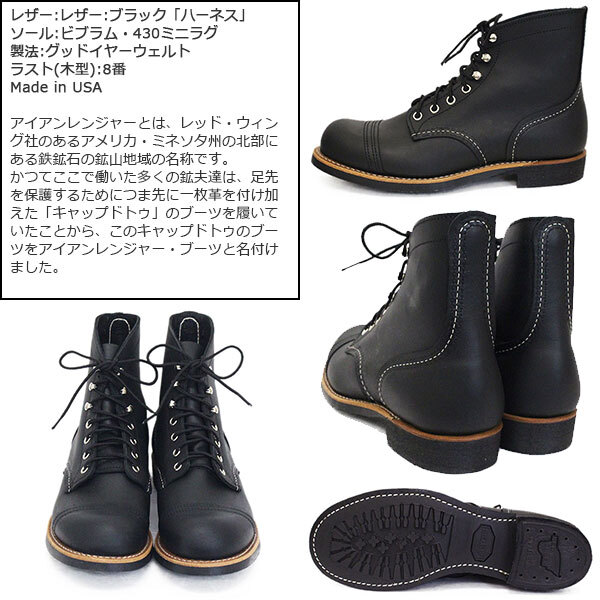 | 商品説明 | REDWING (レッドウィング) 8084 Iron Ranger ブラックハーネス |